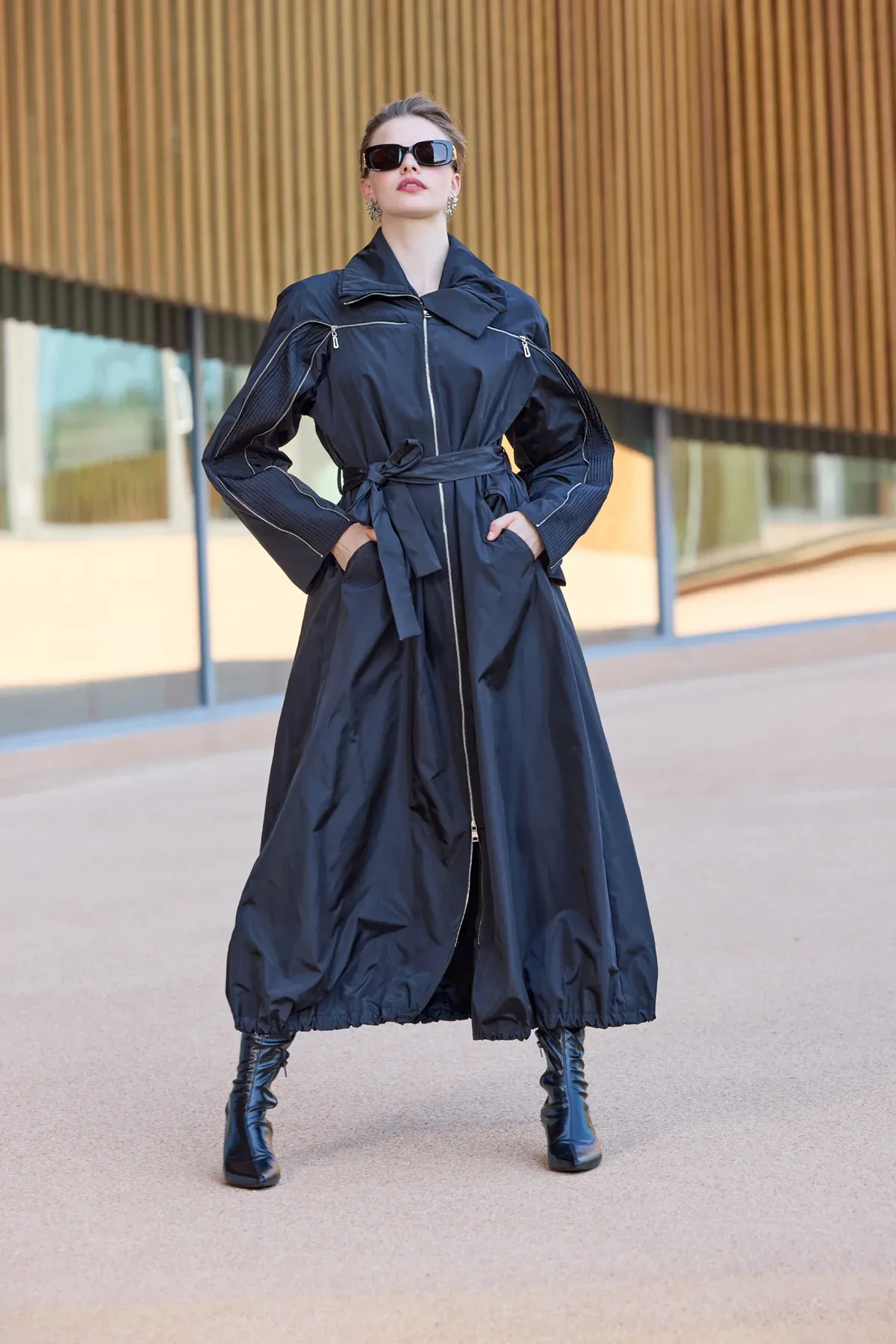 Nuss 6033 Kapişon ve Kol Yazı Detay Trenç - Camel