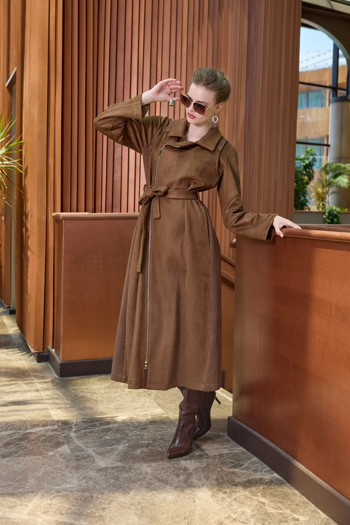 Nuss 6029 Yaka Zımba Detay Süet Kap - KAHVE