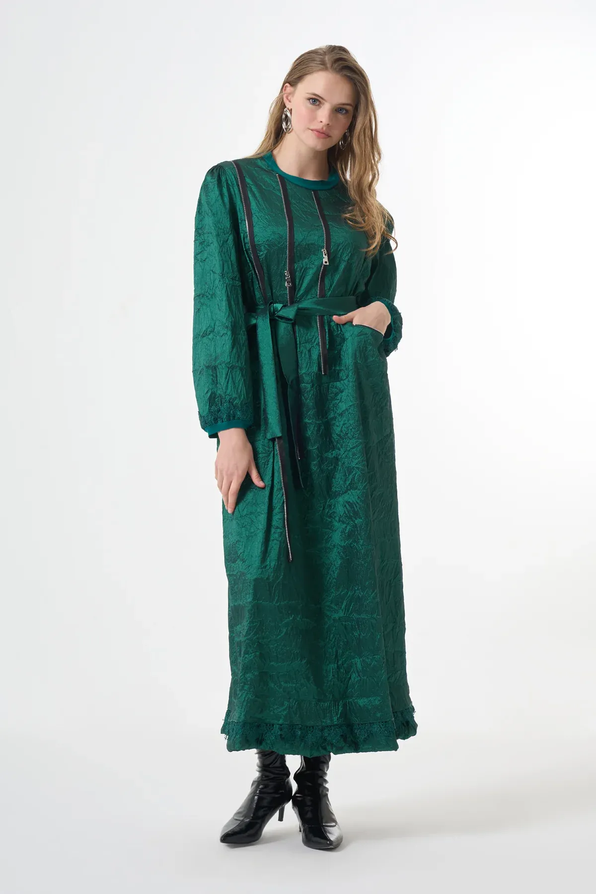 NUSS DESENLİ ELBİSE 2061 YEŞİL