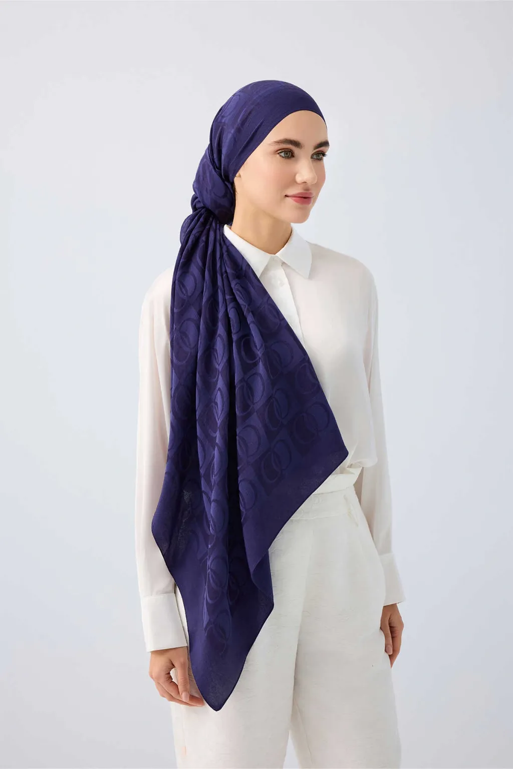 İmannoor Dama Desen Lacivert Naia Pamuk Şal 70x200 241-3001-003