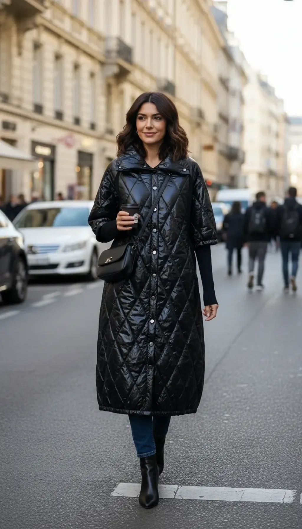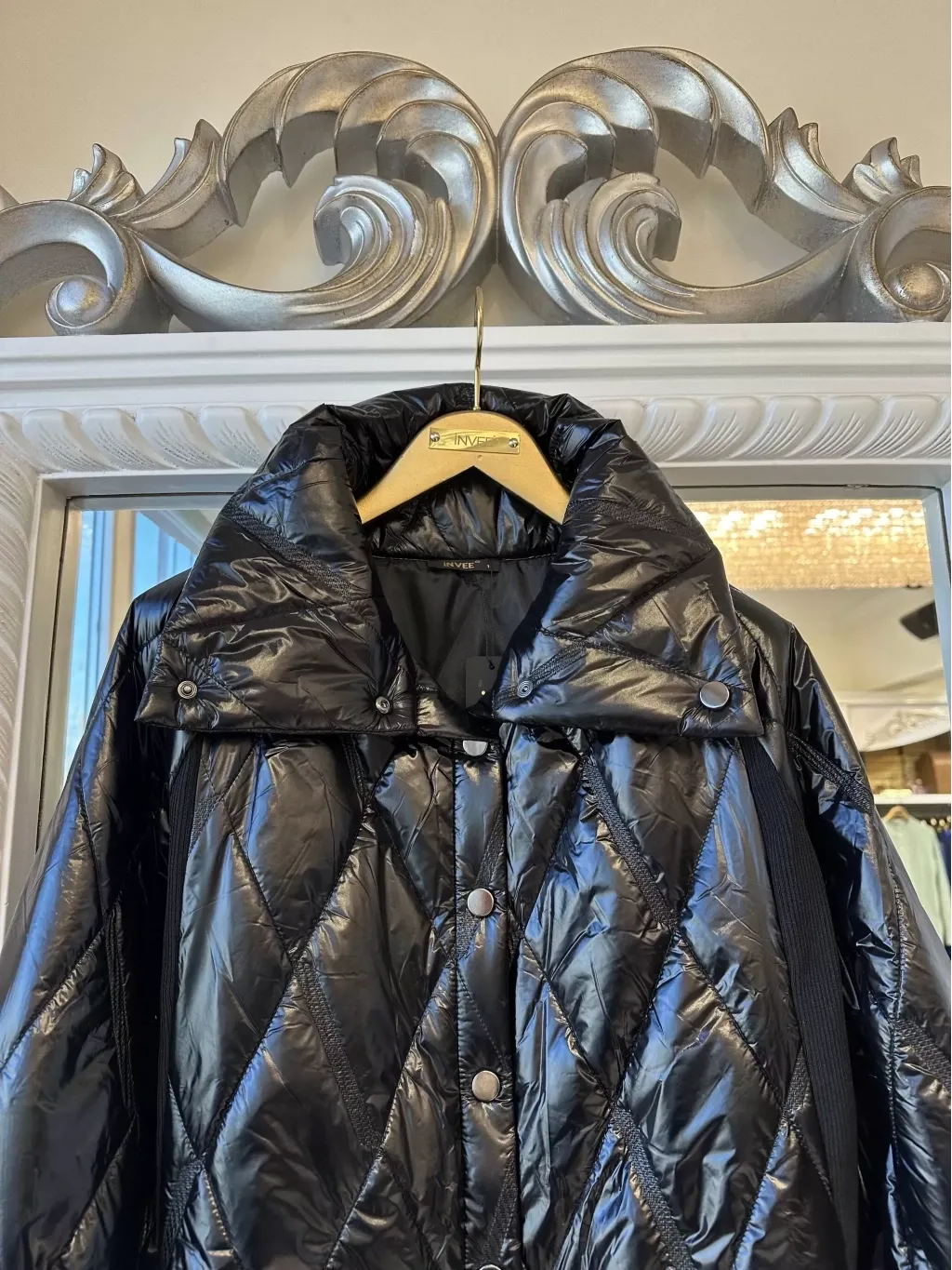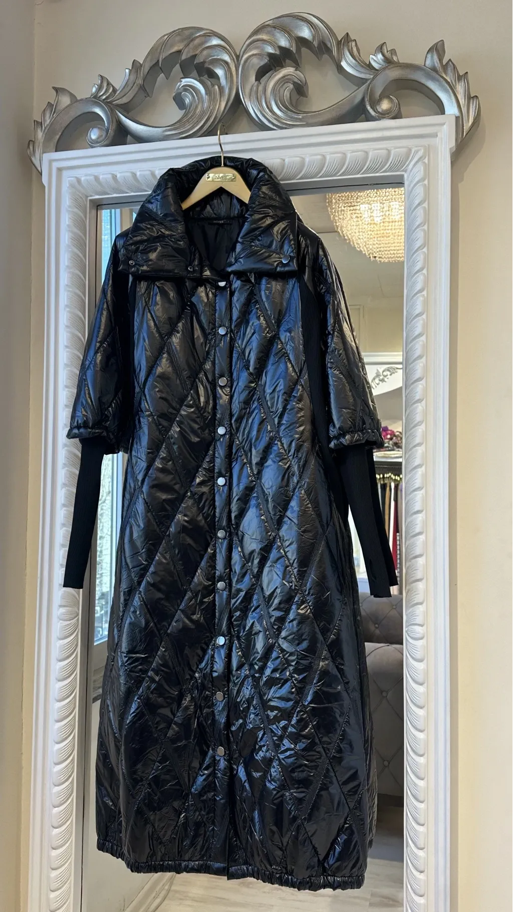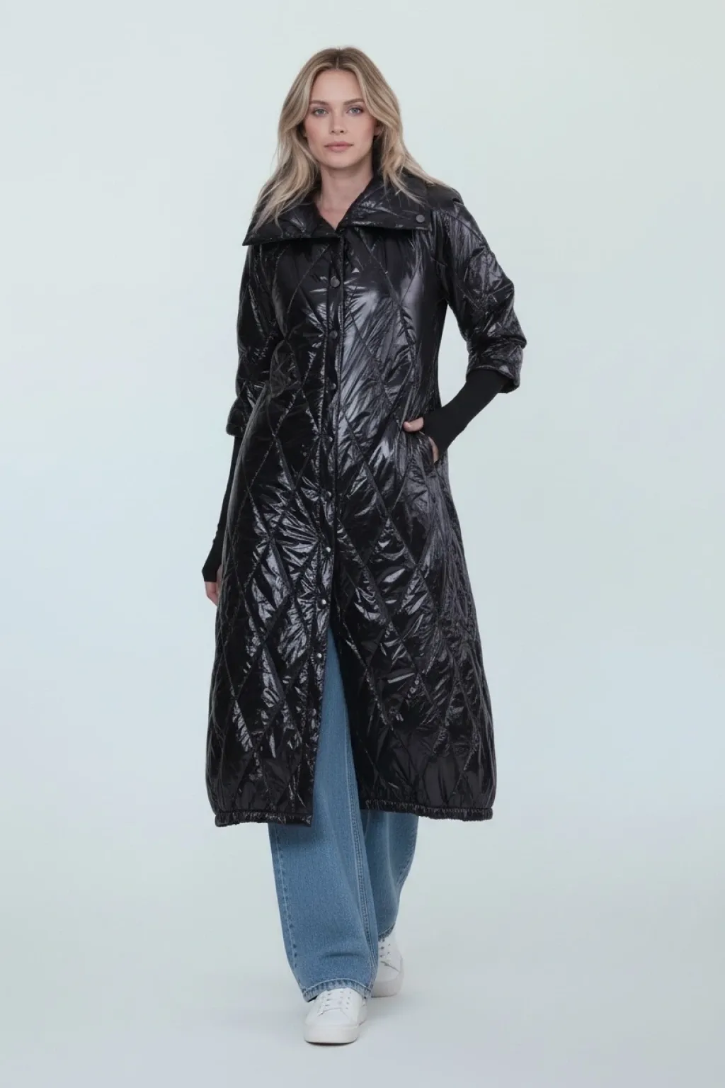 İnvee Çıtçıt Kapamalı Uzun Kapitone Mont - SİYAH