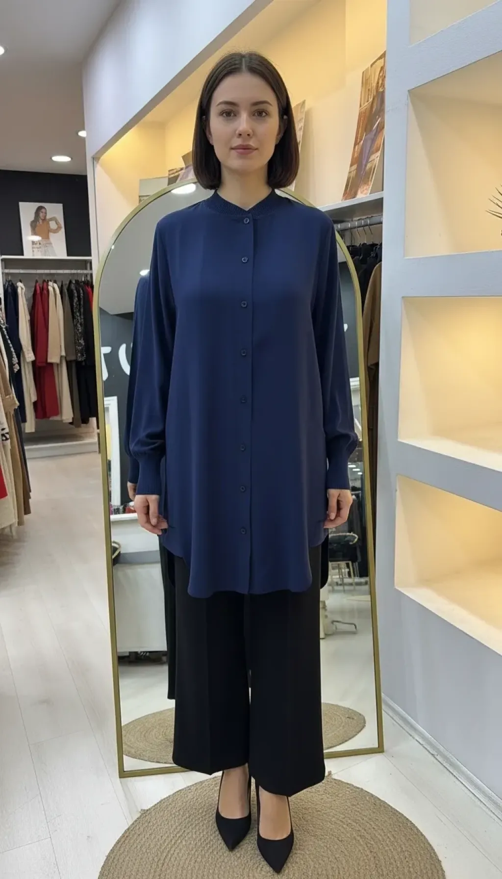 *Ürün boy uzunlukları kumaş türüne ve ürün bedenine göre değişkenlik gösterebilir. Numune ölçü ortak beden baz alınarak hesaplanmıştır.