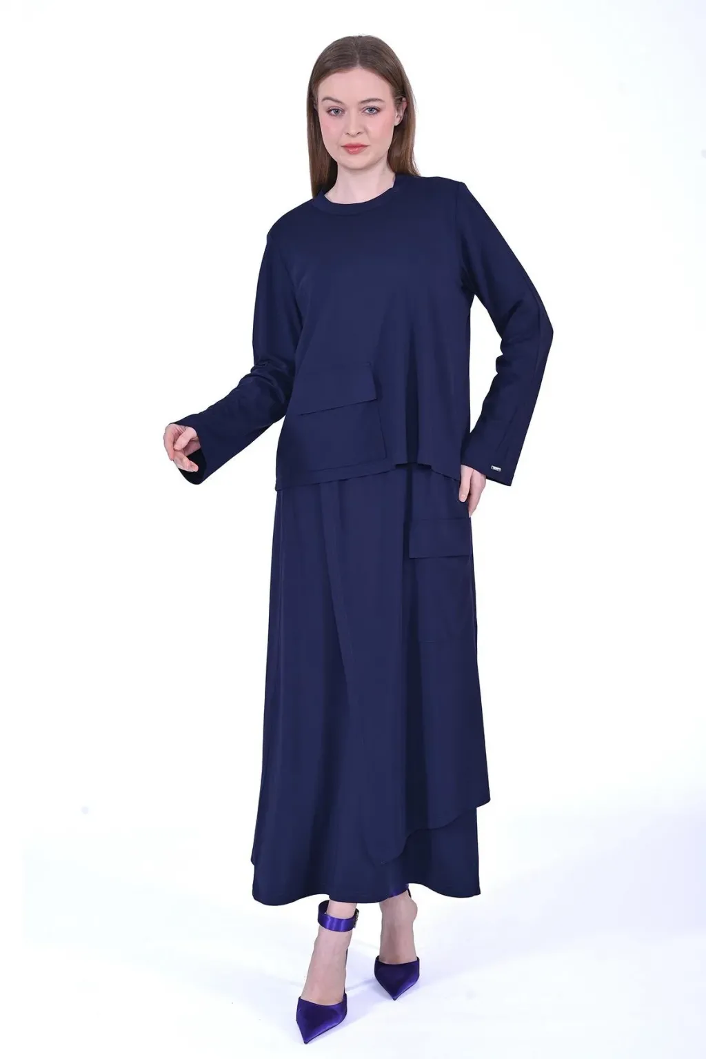invee etekli cep detayli takim lacivert 7023