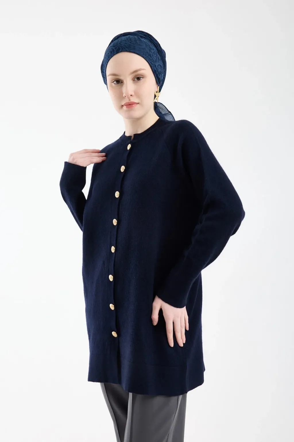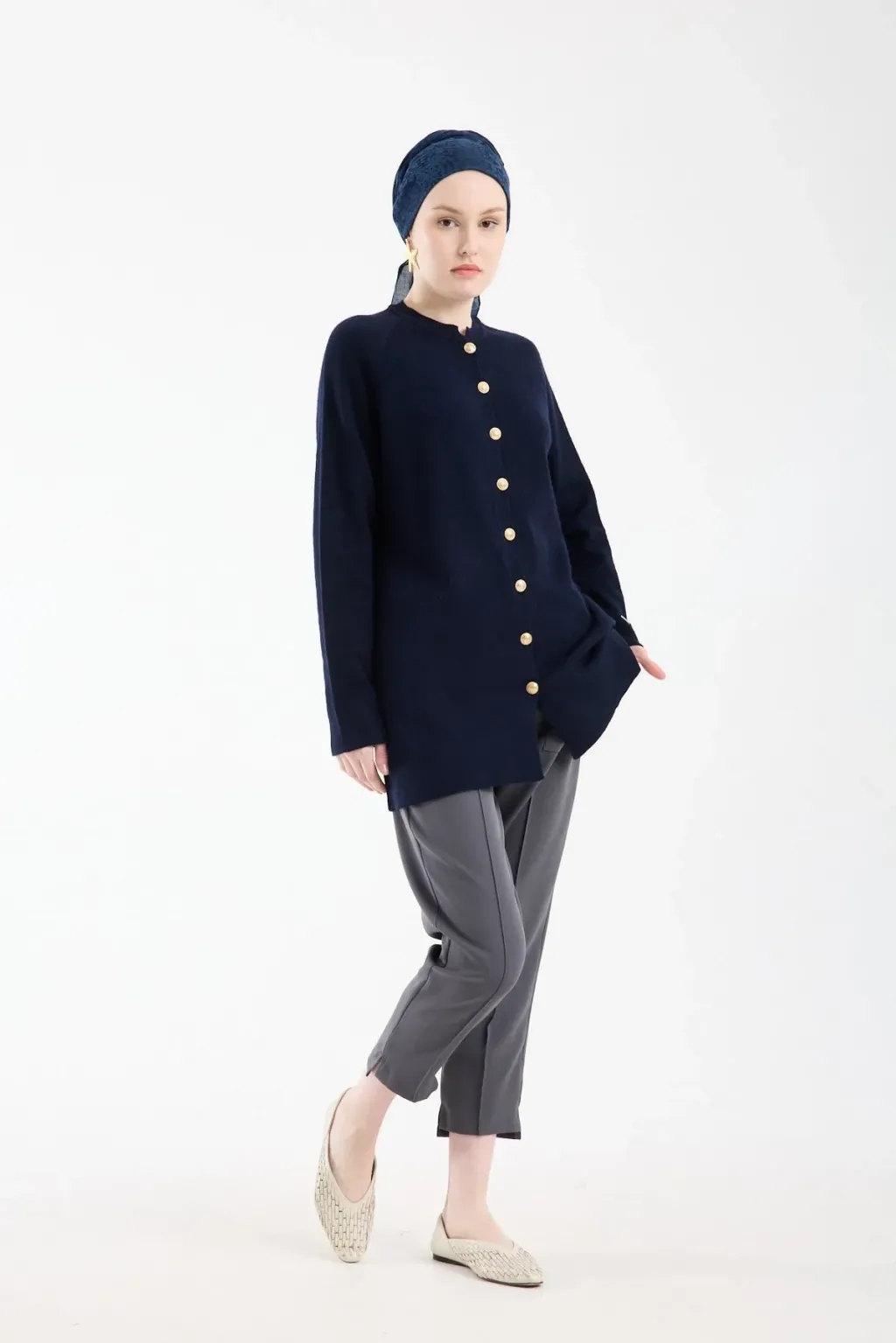 İnvee Çıtçıt Kapamalı Uzun Kapitone Mont - Lacivert 7225