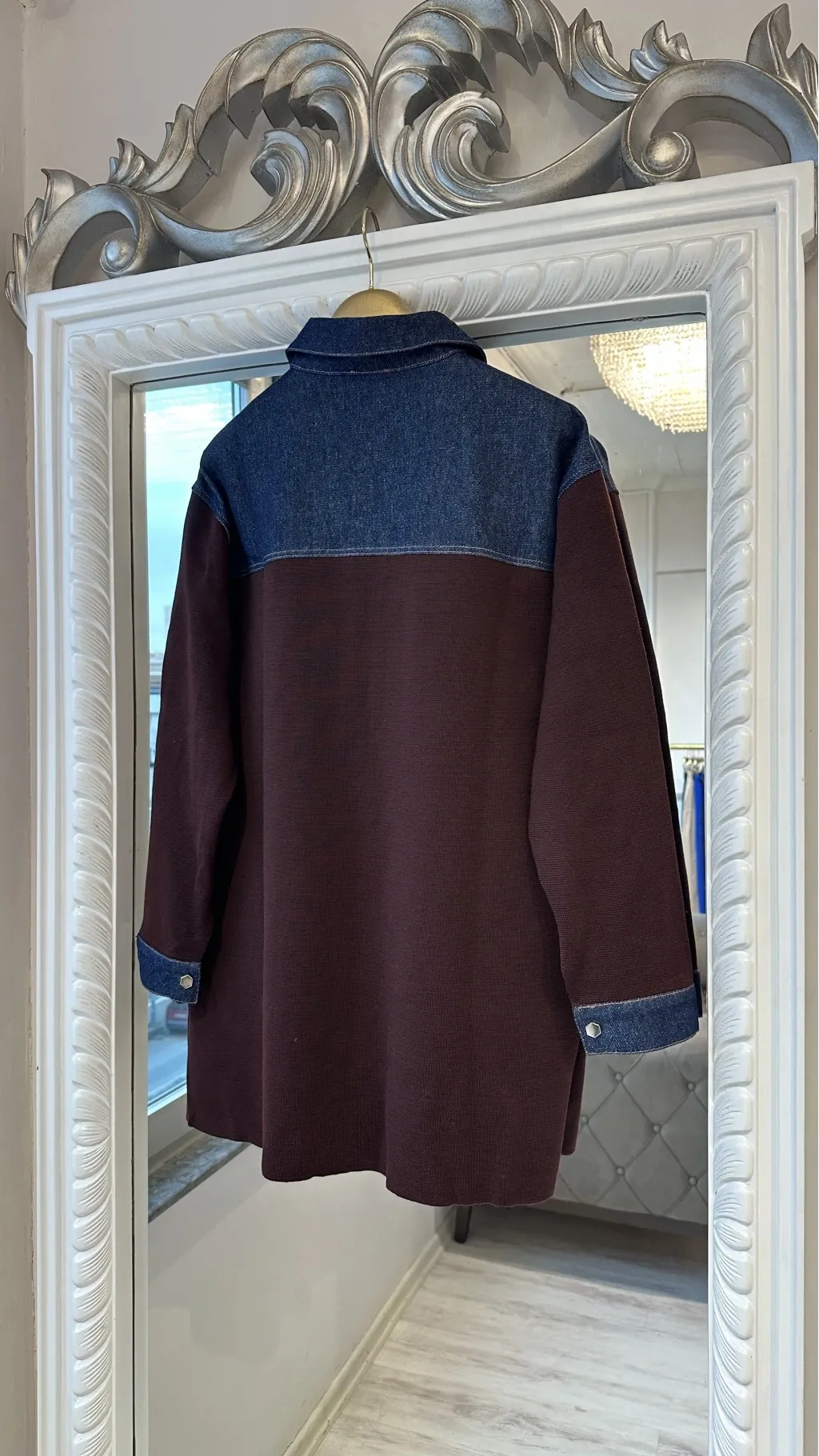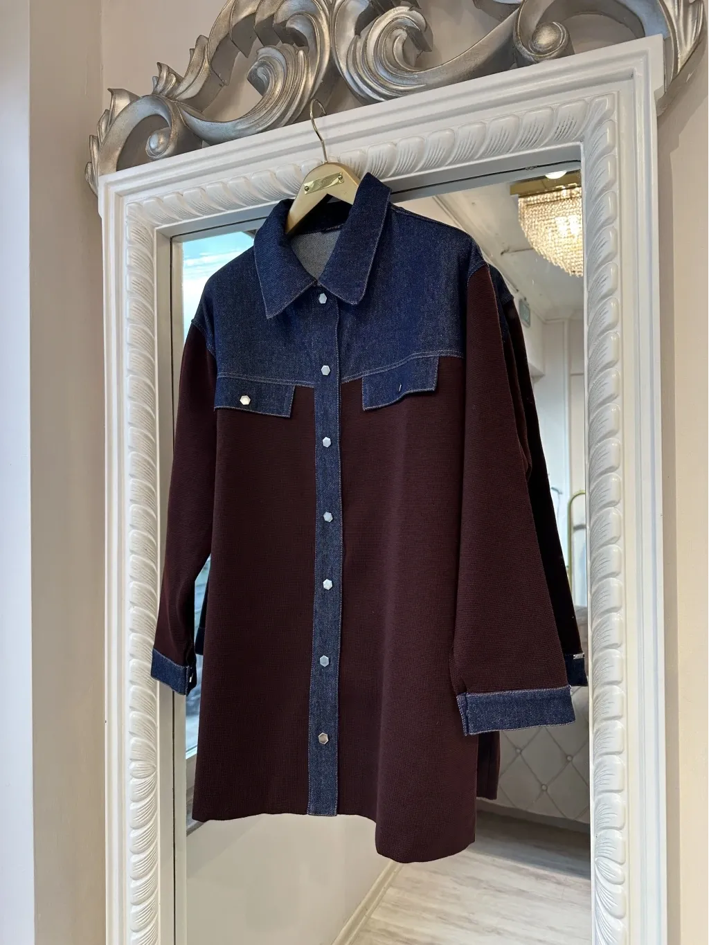 Modern tasarımı ve rahat kalıbıyla öne çıkan denim detaylı gömlek ceket, günlük şıklığı konforla buluşturur. Üst bölümde kullanılan denim kumaş detayı modele dinamik bir görünüm kazandırırken, gövde ve kol kısmındaki triko kumaş gün boyu rahat bir kullanım sağlar.