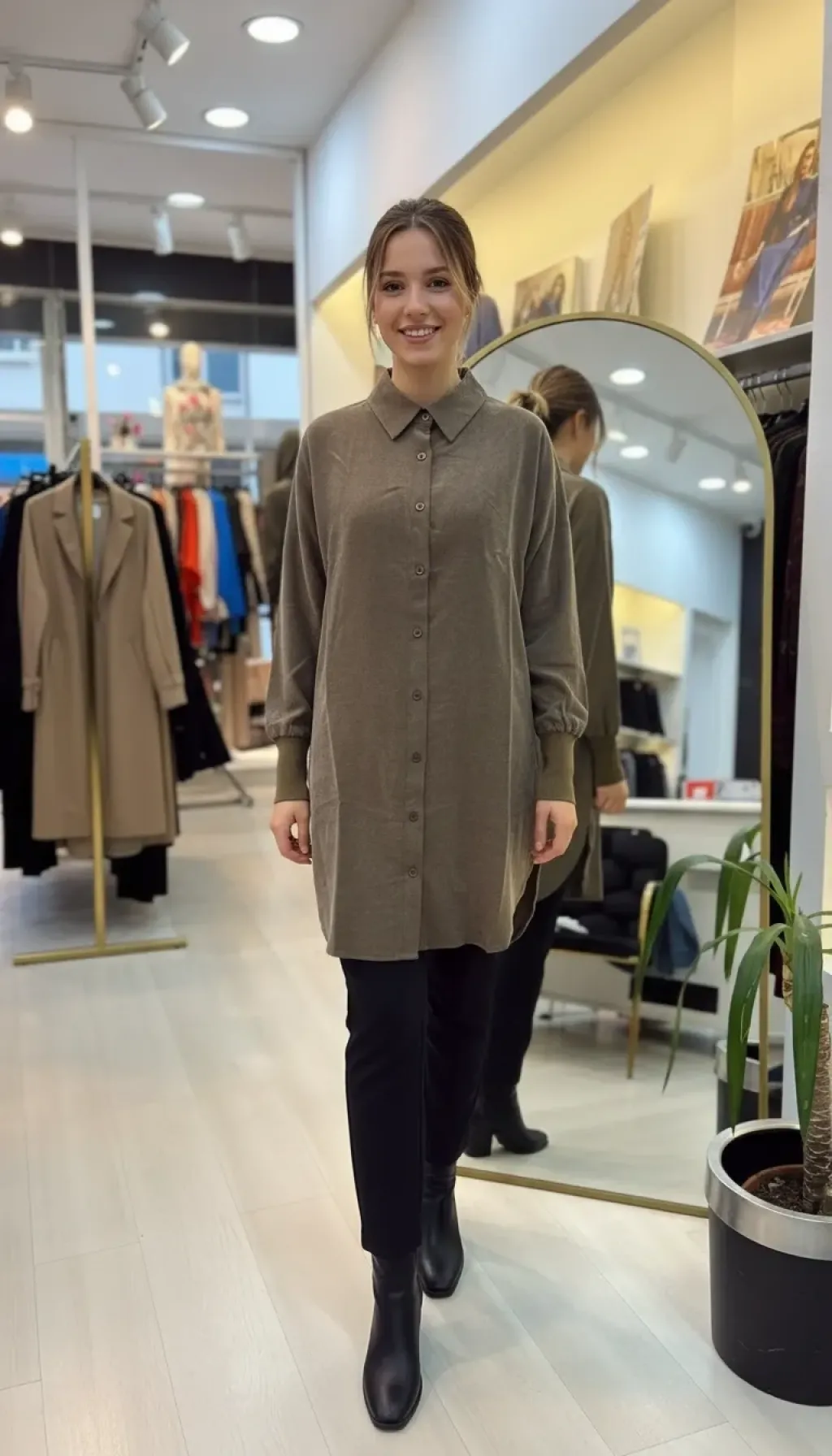 *Ürün boy uzunlukları kumaş türüne ve ürün bedenine göre değişkenlik gösterebilir. Numune ölçü ortak beden baz alınarak hesaplanmıştır.