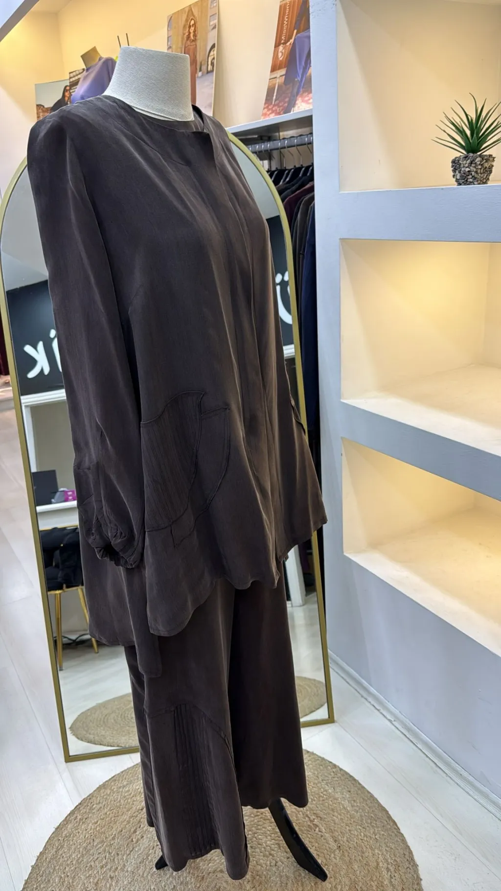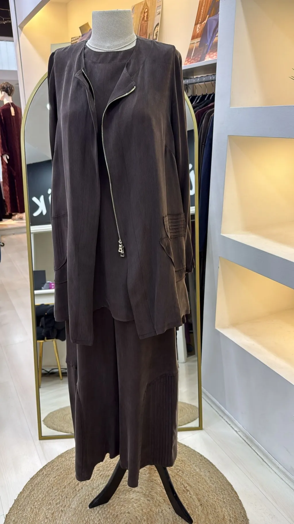 ÜRÜN İPEK ÜÇLÜ CEKET TUNİK PANTOLON TAKIMDIR