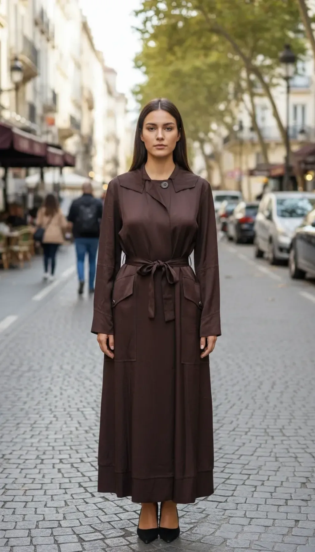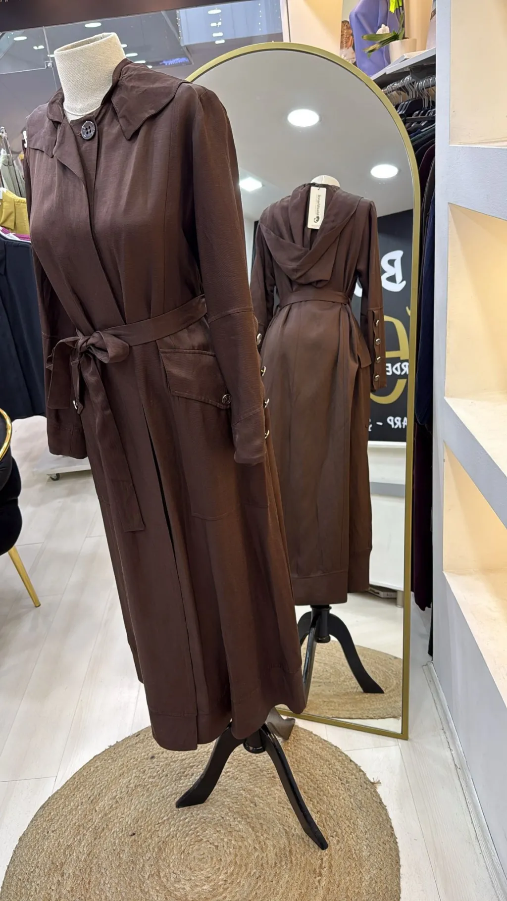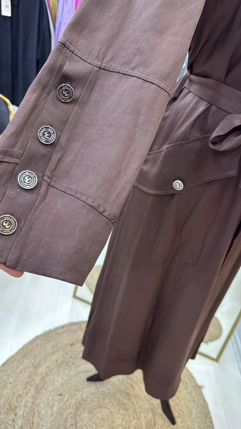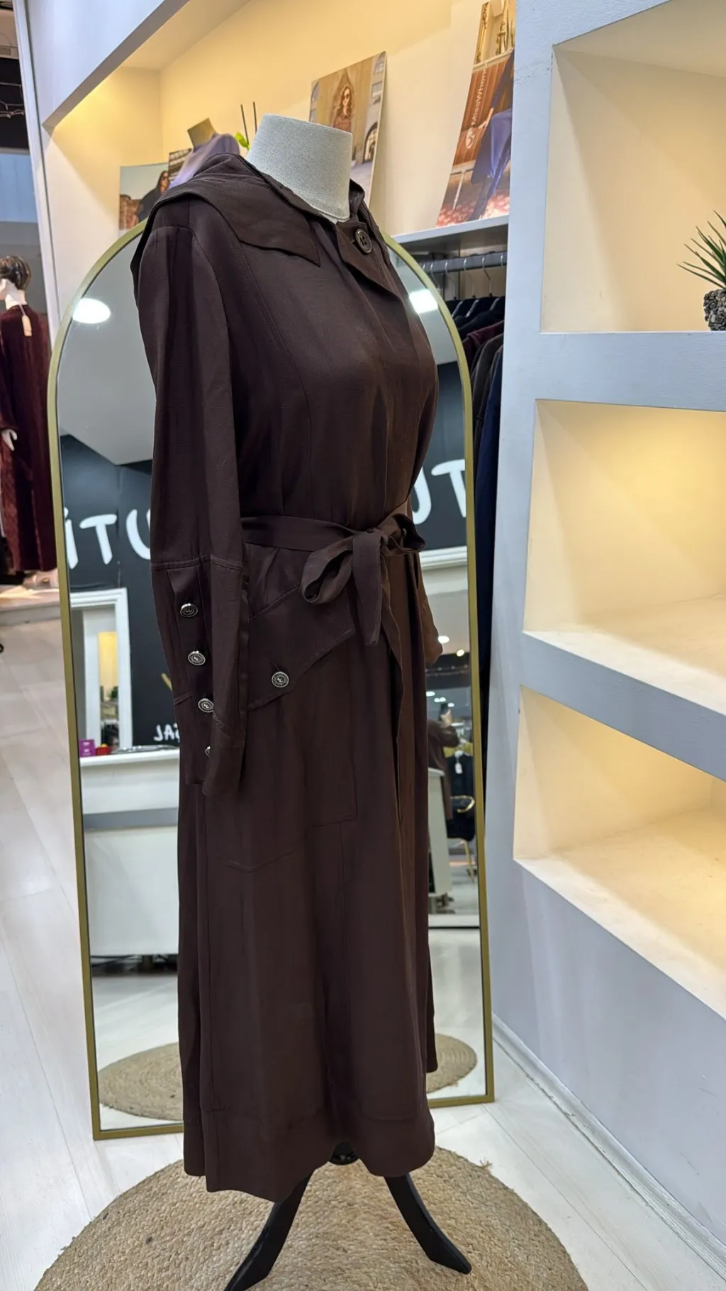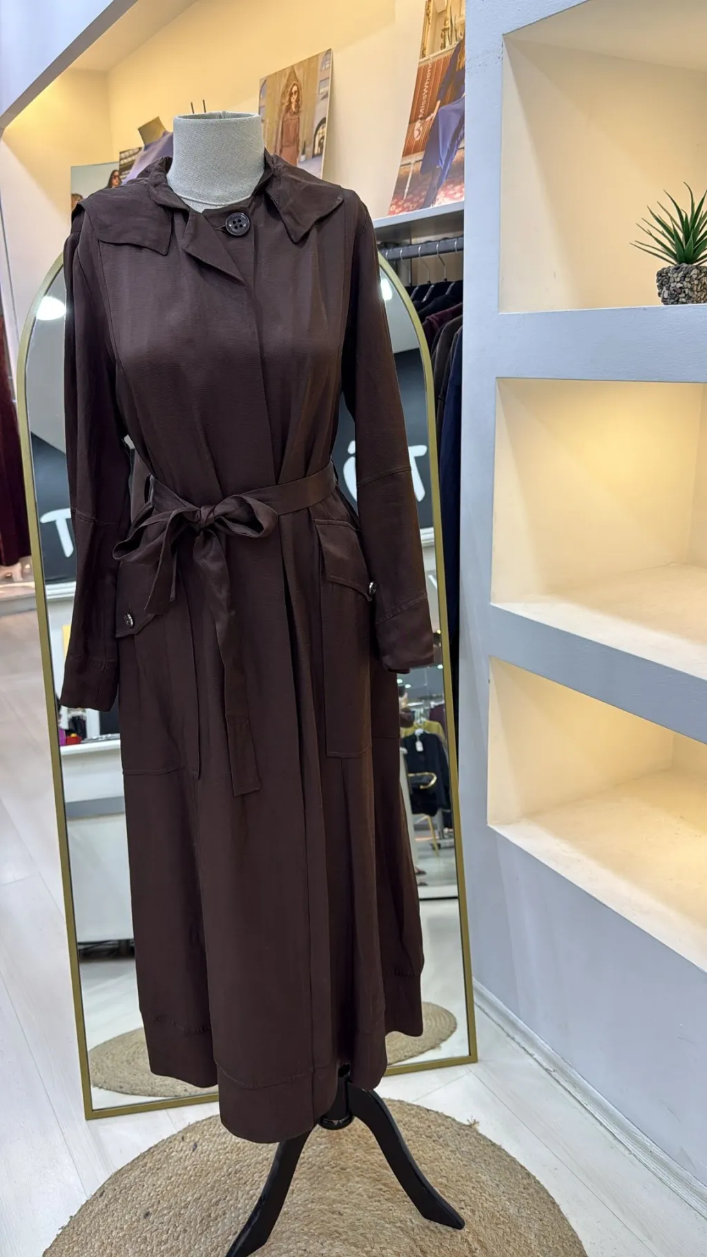 KUŞAKLIDIR VE KOLU METALİK DÜĞME DETAYLIDIR HER BEDEN ARASİNDA 4 CM FARK VARDİR