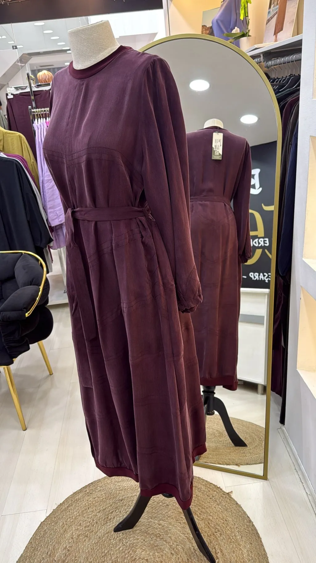 ÜRÜN KUPRA İPEK ELBİSEDİR SPOR DİKİŞ DETAYLIDIR KUŞAKLI ÇOK RAHAT BİR ELBİSEDİR