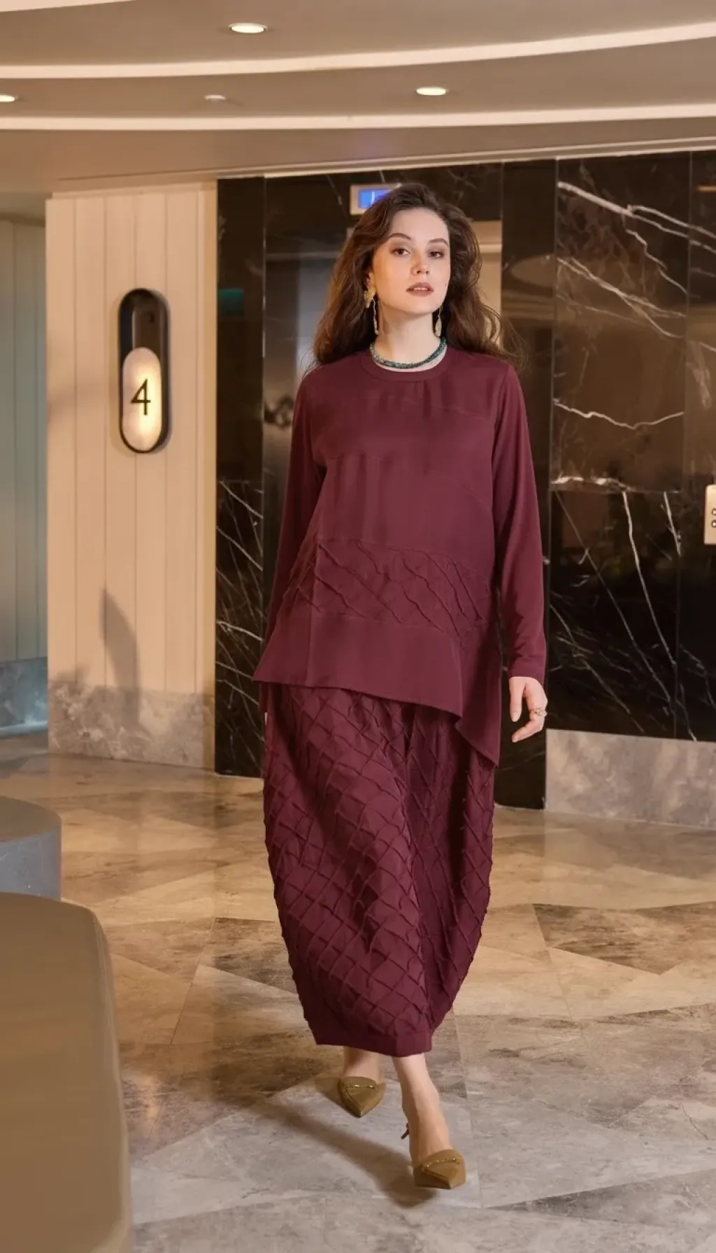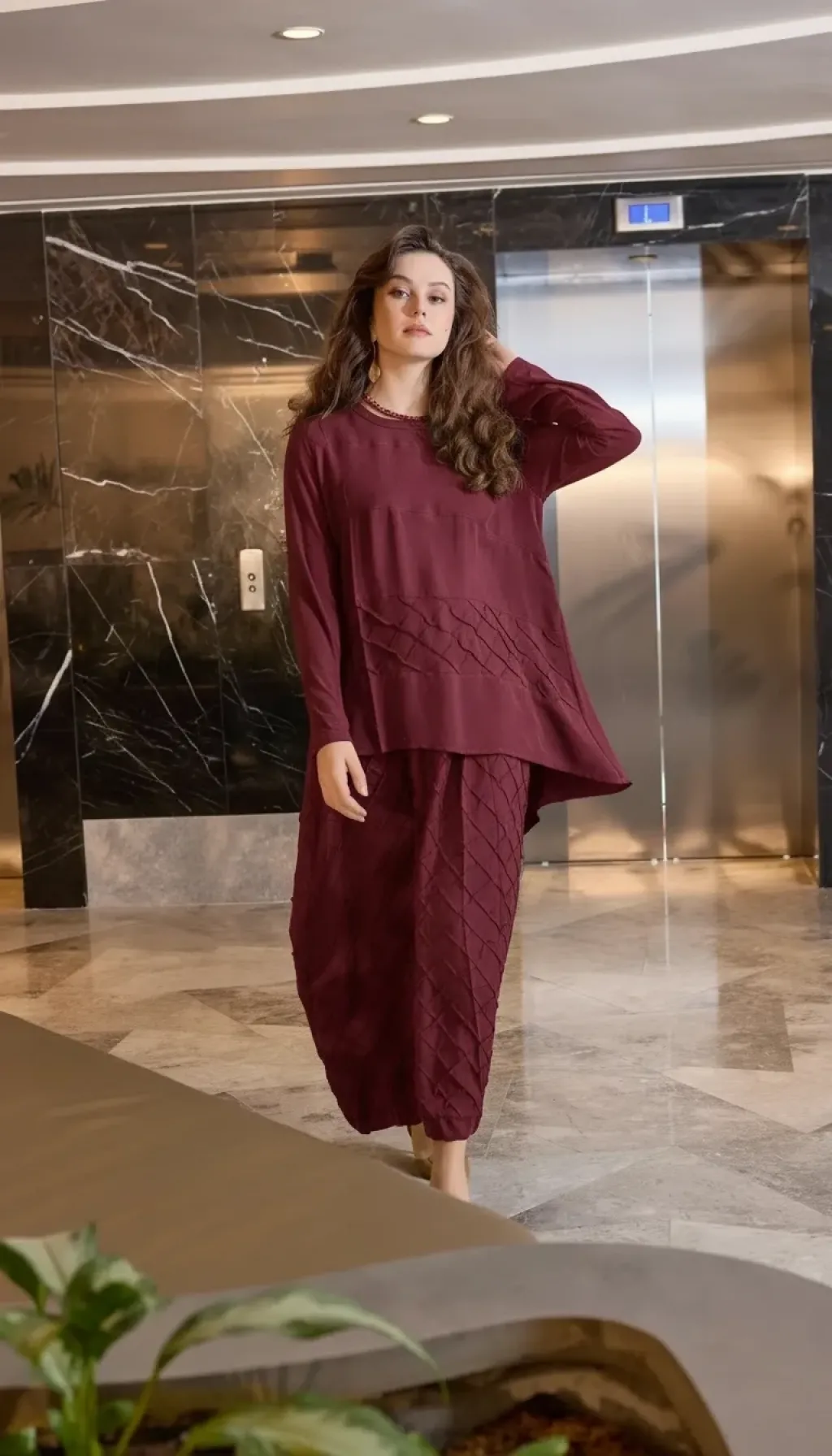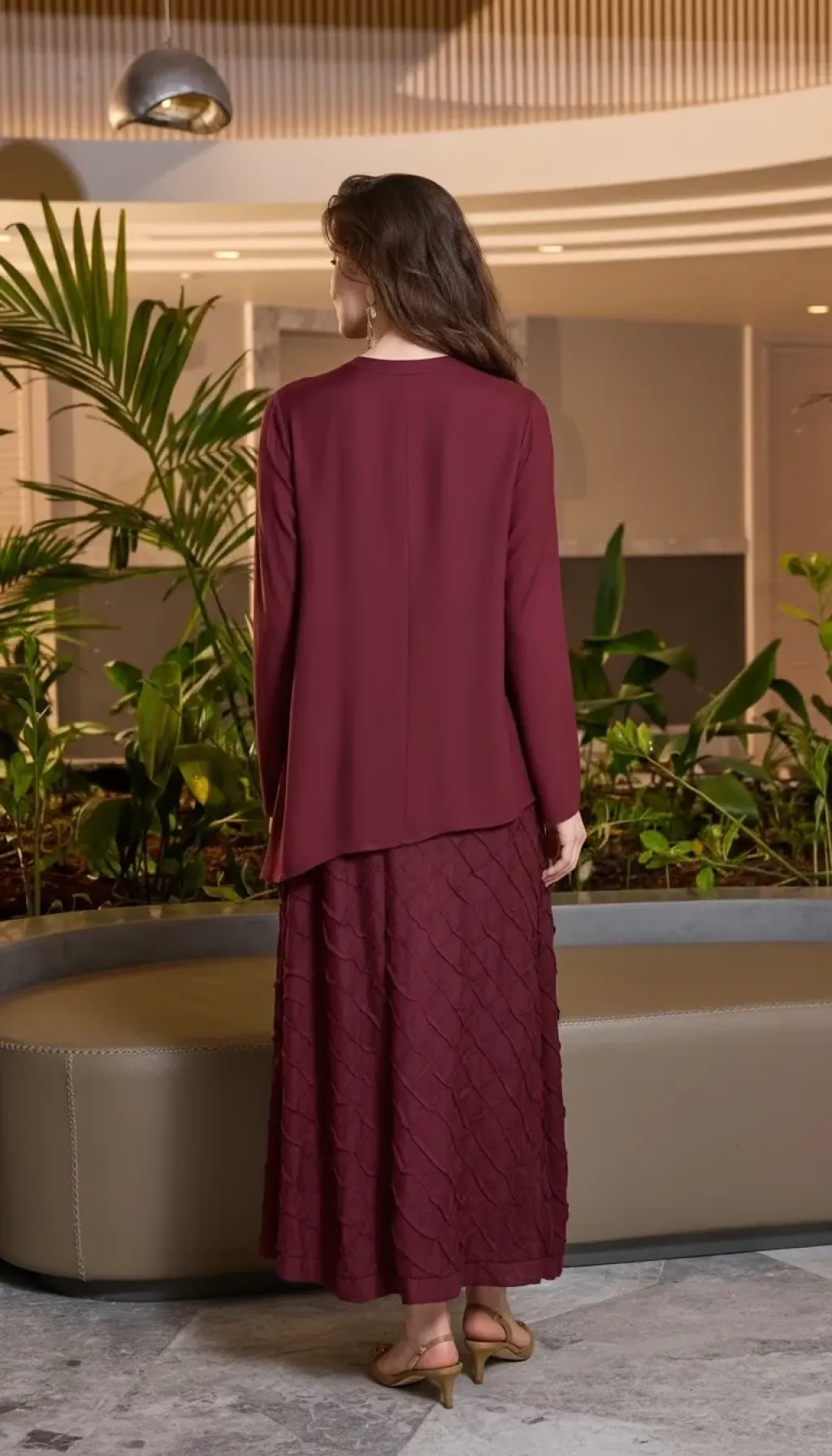 Misswhence Cupra İpek Etekli Bluz Takım 39002 bordo