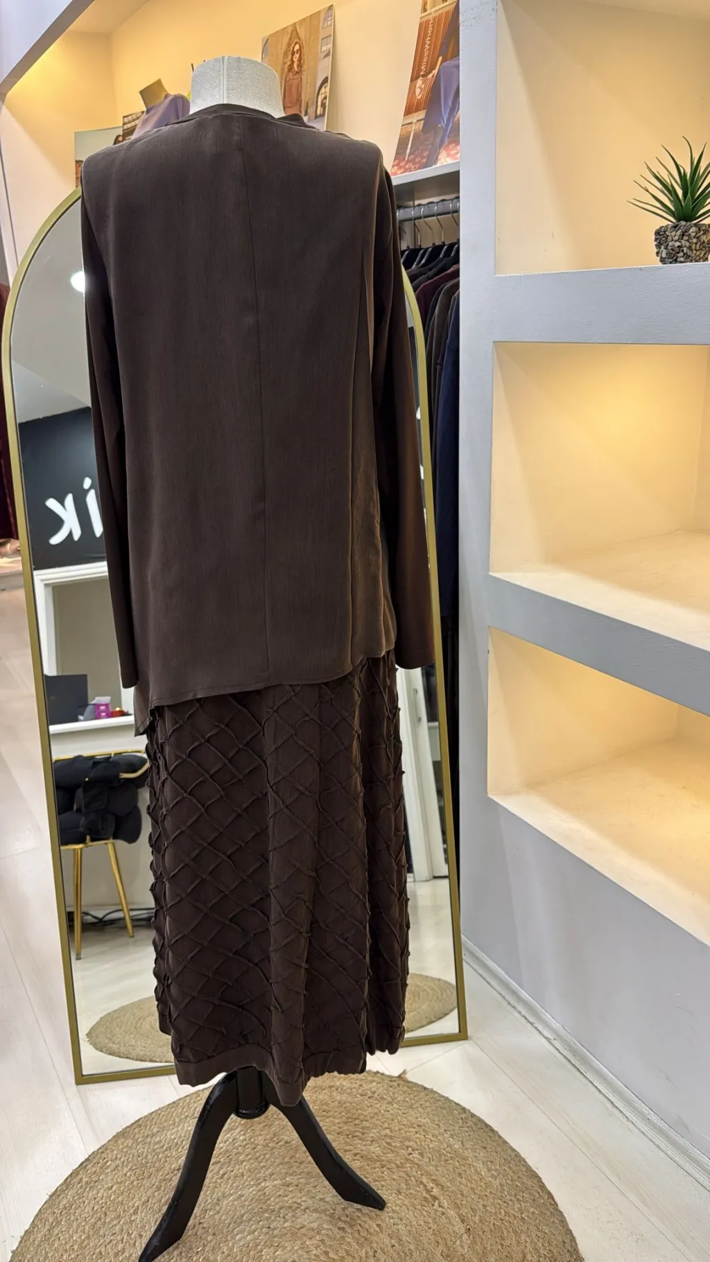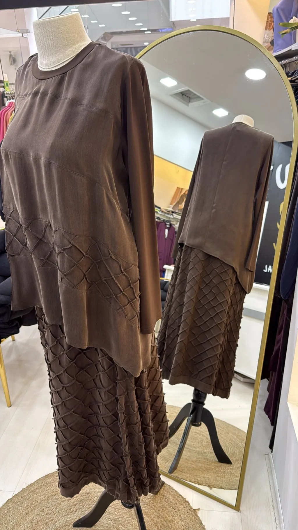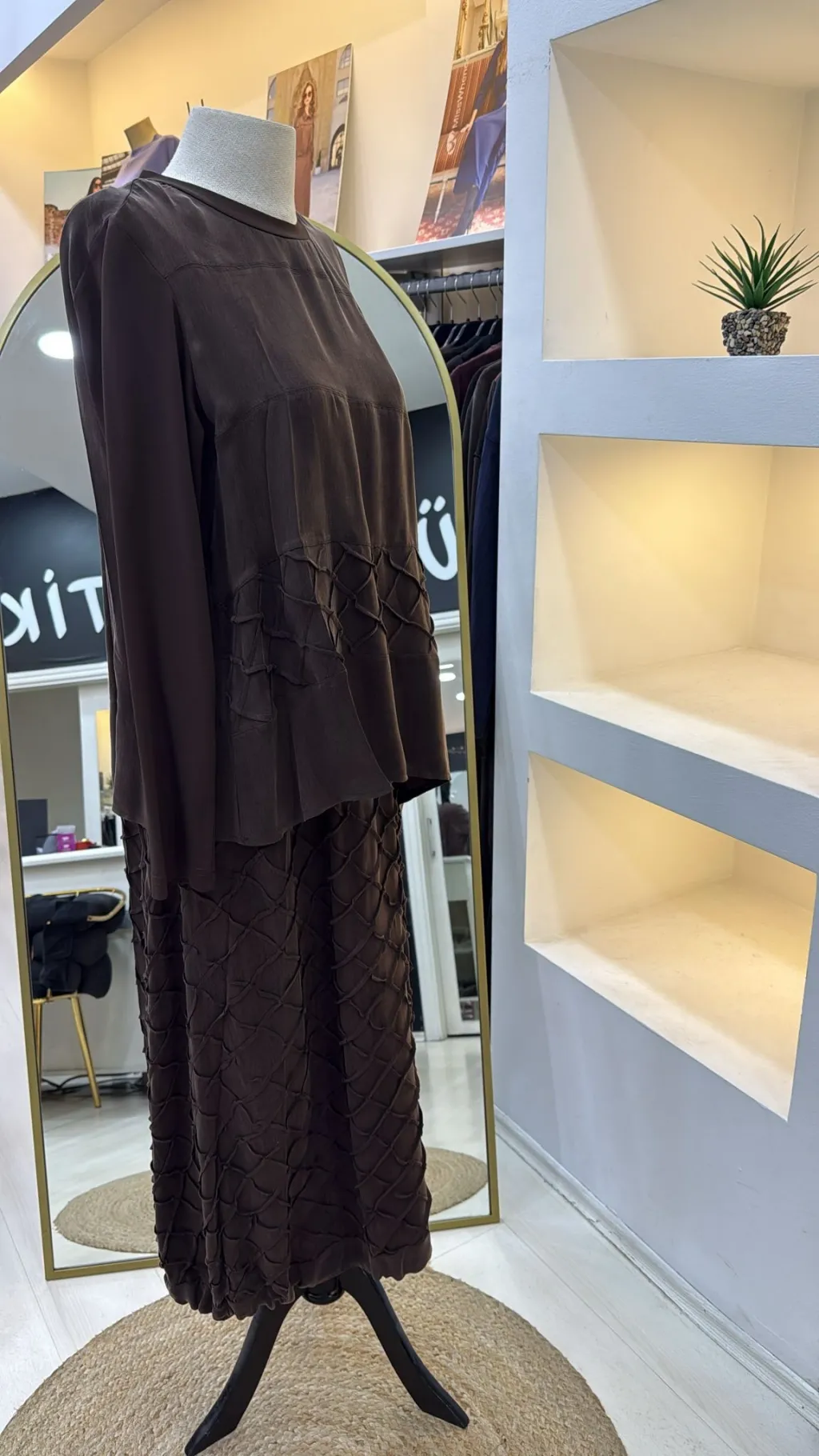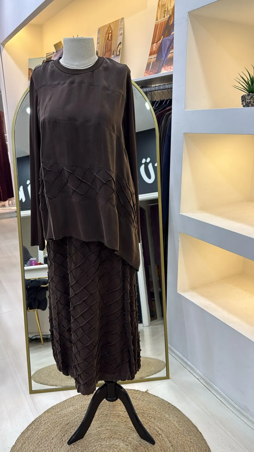 ÜRÜN ÜÇ BOYUTLU DİKİŞ DETAYLI İPEK BLUZ ETEK TAKIMDIR