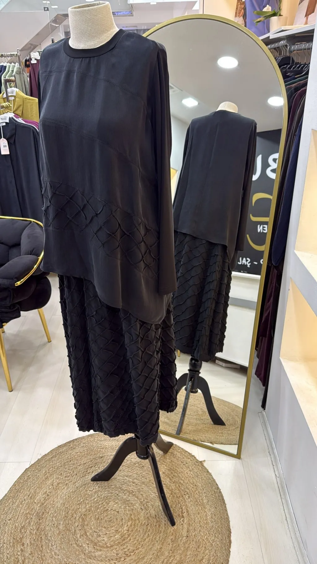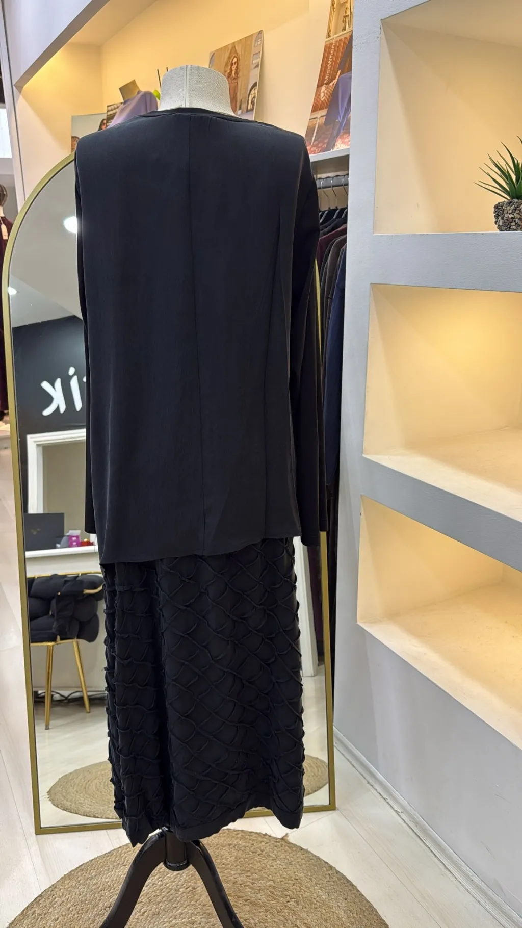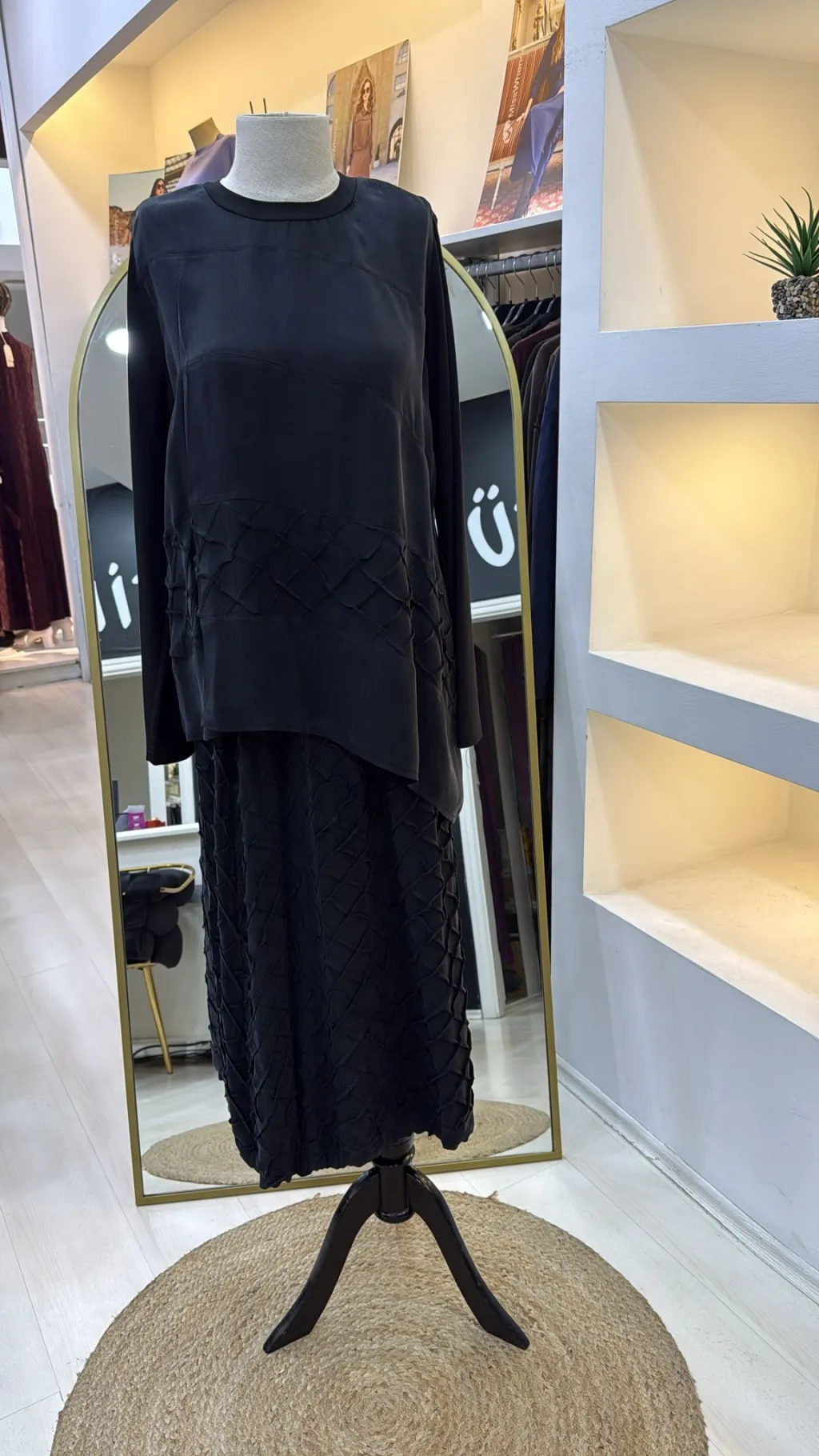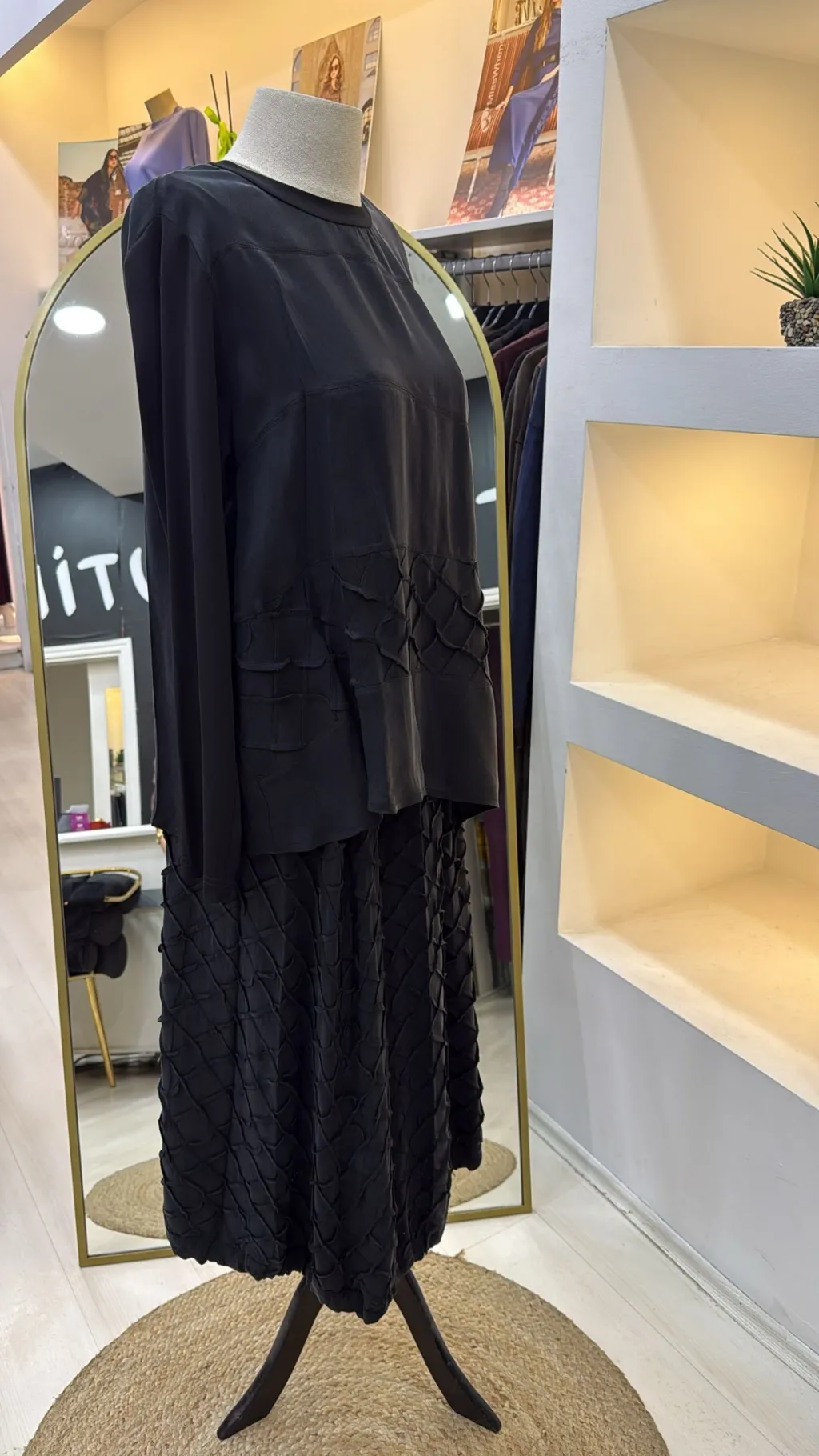 ÜRÜN ÜÇ BOYUTLU DİKİŞ DETAYLI İPEK BLUZ ETEK TAKIMDIR
