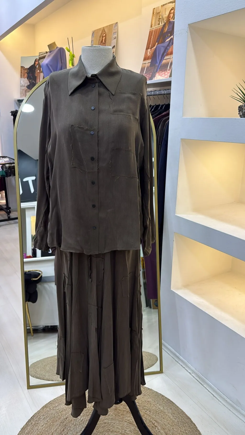 Misswhence Cupra İpek Etekli Gömlek Takım 39304 HAKİ