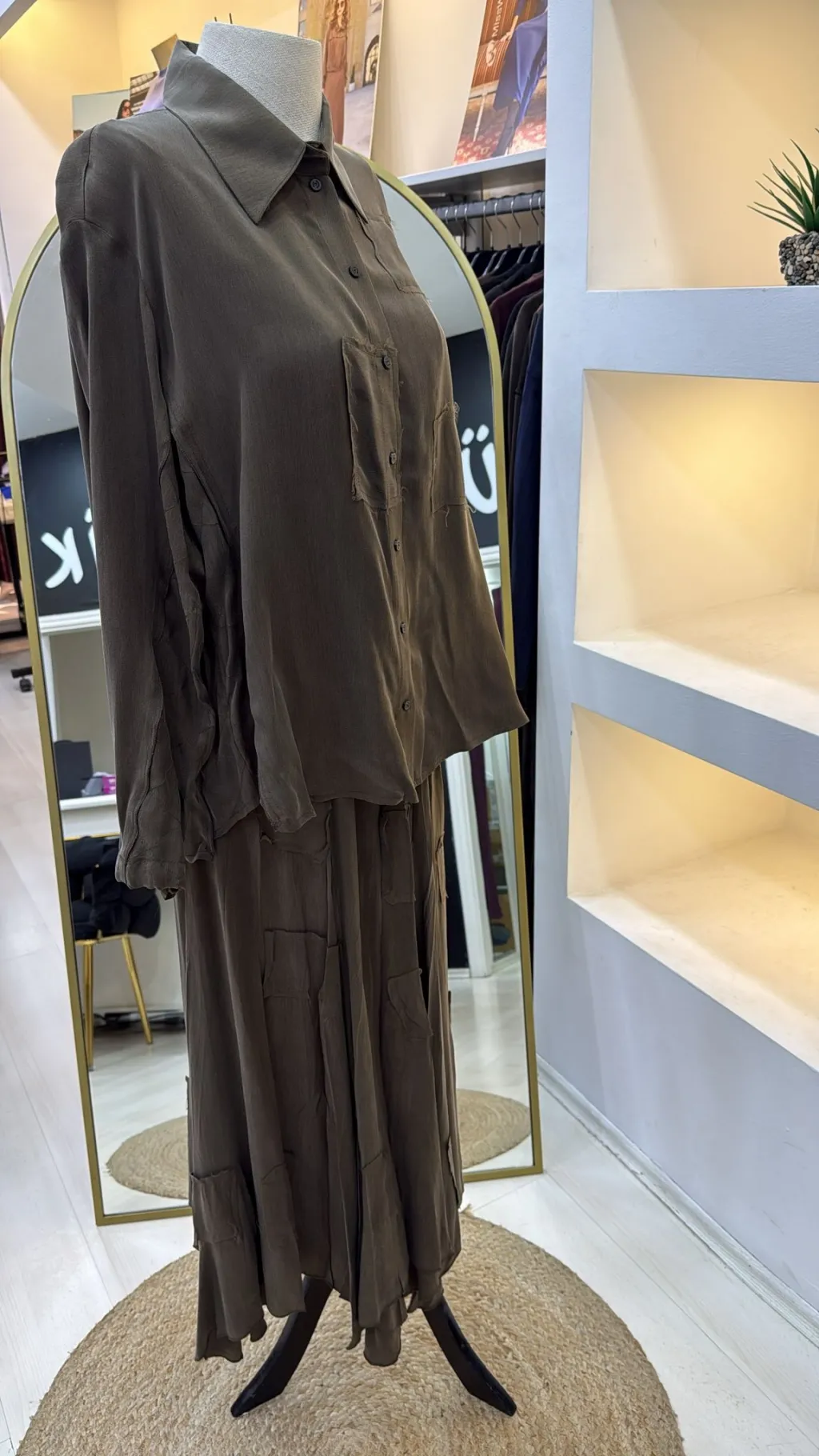• MİSSWHENCE Cupra İpek Etekli GOMLEK Takım, şıklığı ve zarafeti bir arada sunar.