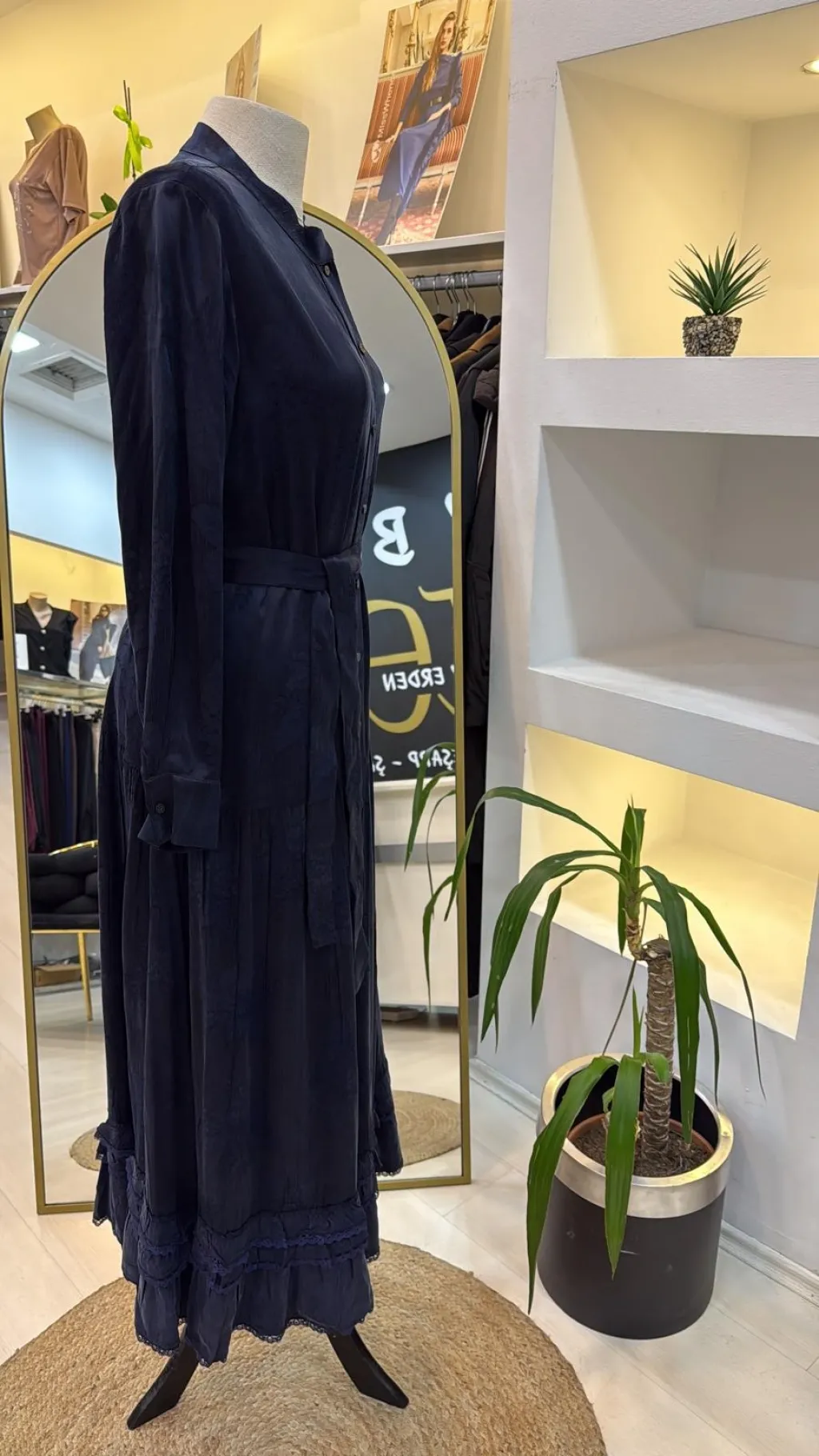 Jakarlı Cupro Elbise