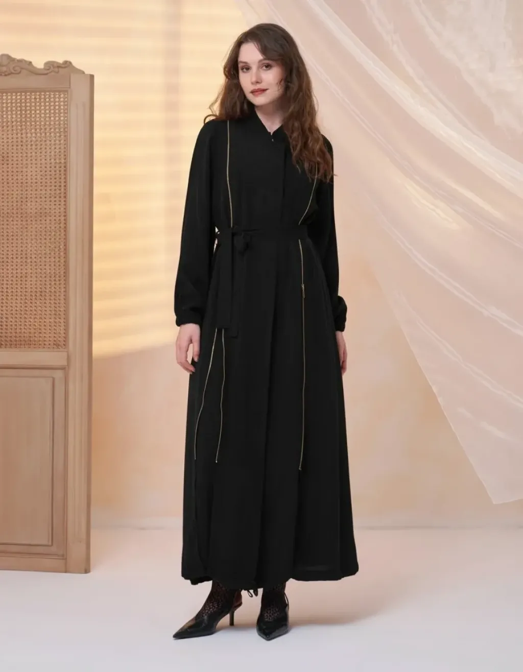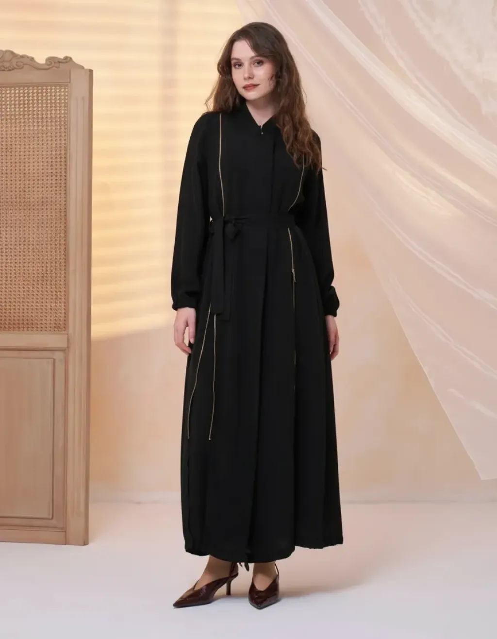 Misswhence Fermuar Detaylı Cupra İpek FERACE 39501 SİYAH
