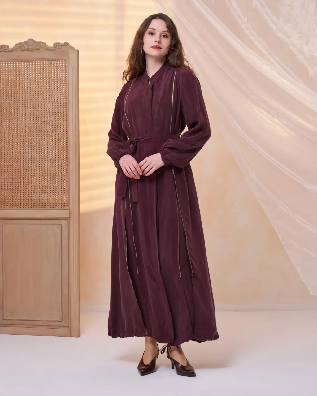 Misswhence Fermuar Detaylı Cupra İpek FERACE 39501 BORDO