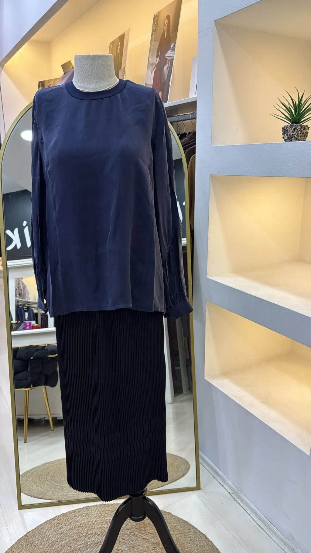 Misswhence Cupra İpek Etekli Bluz Takım 39002 SİYAH