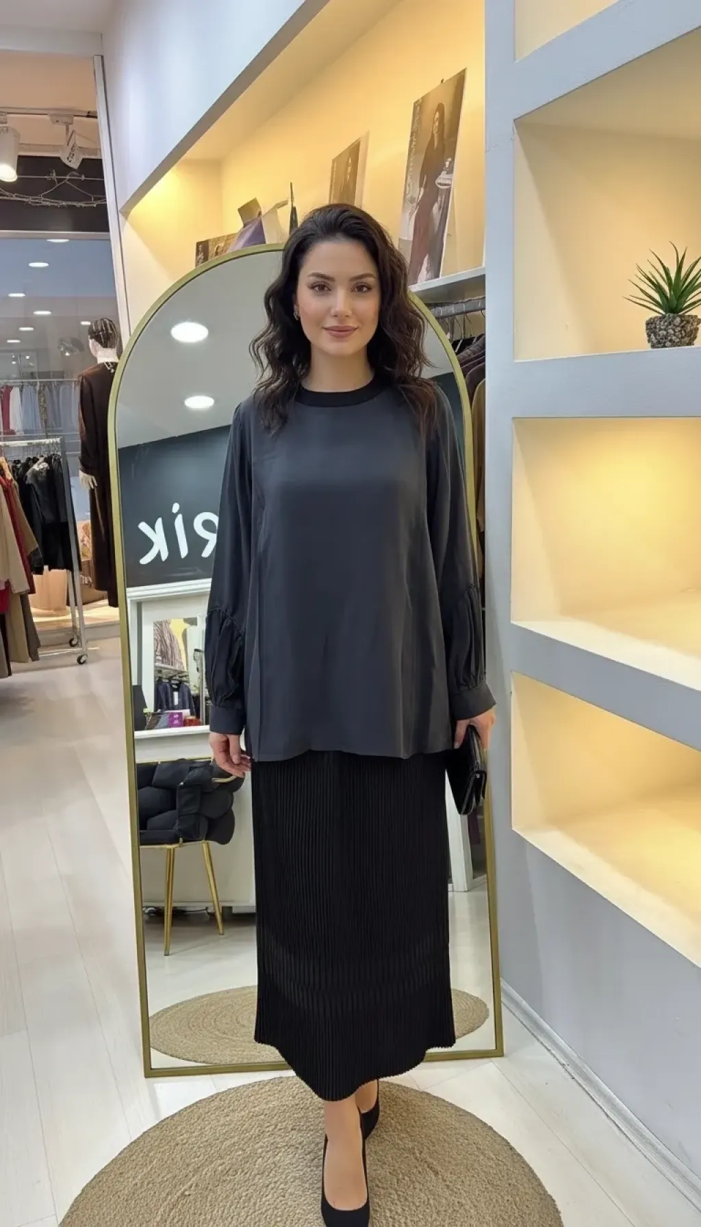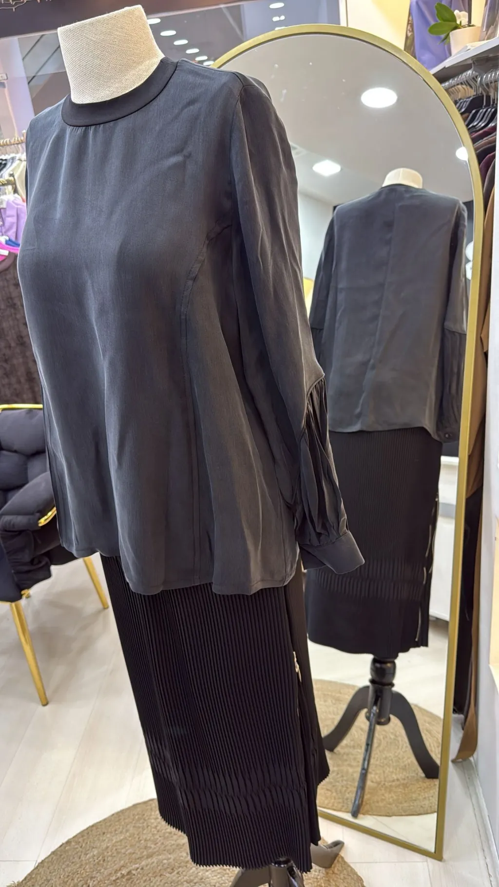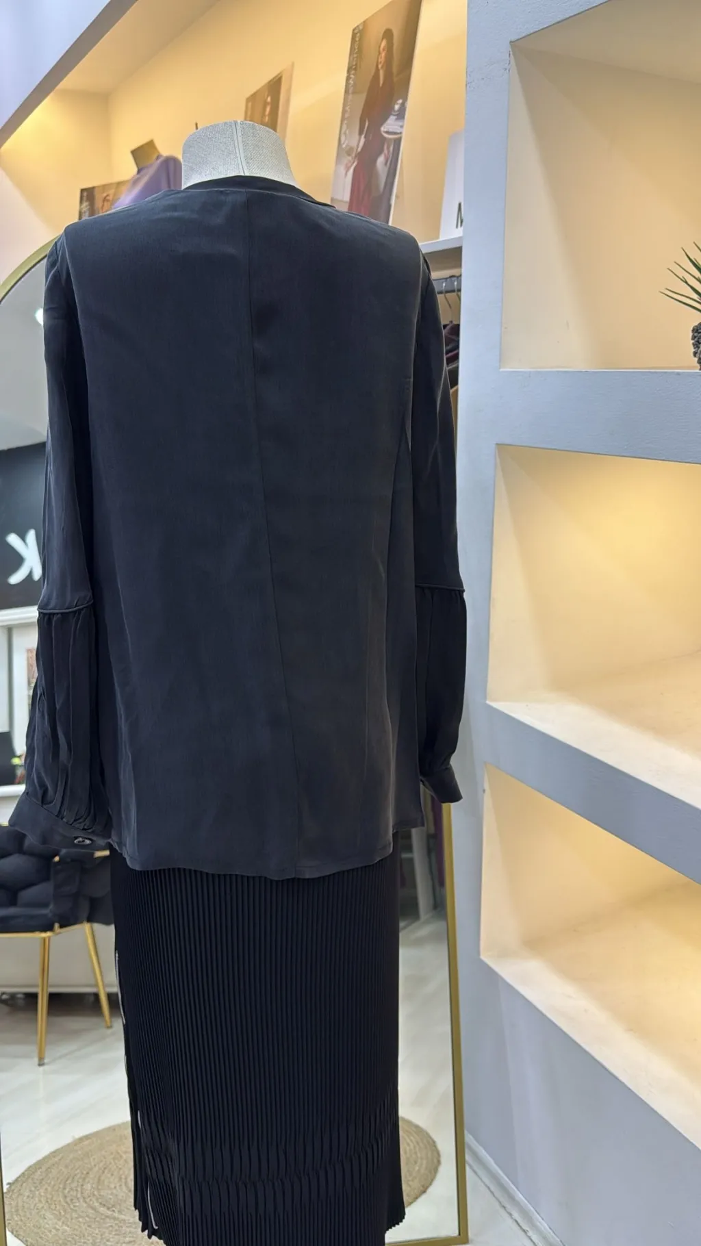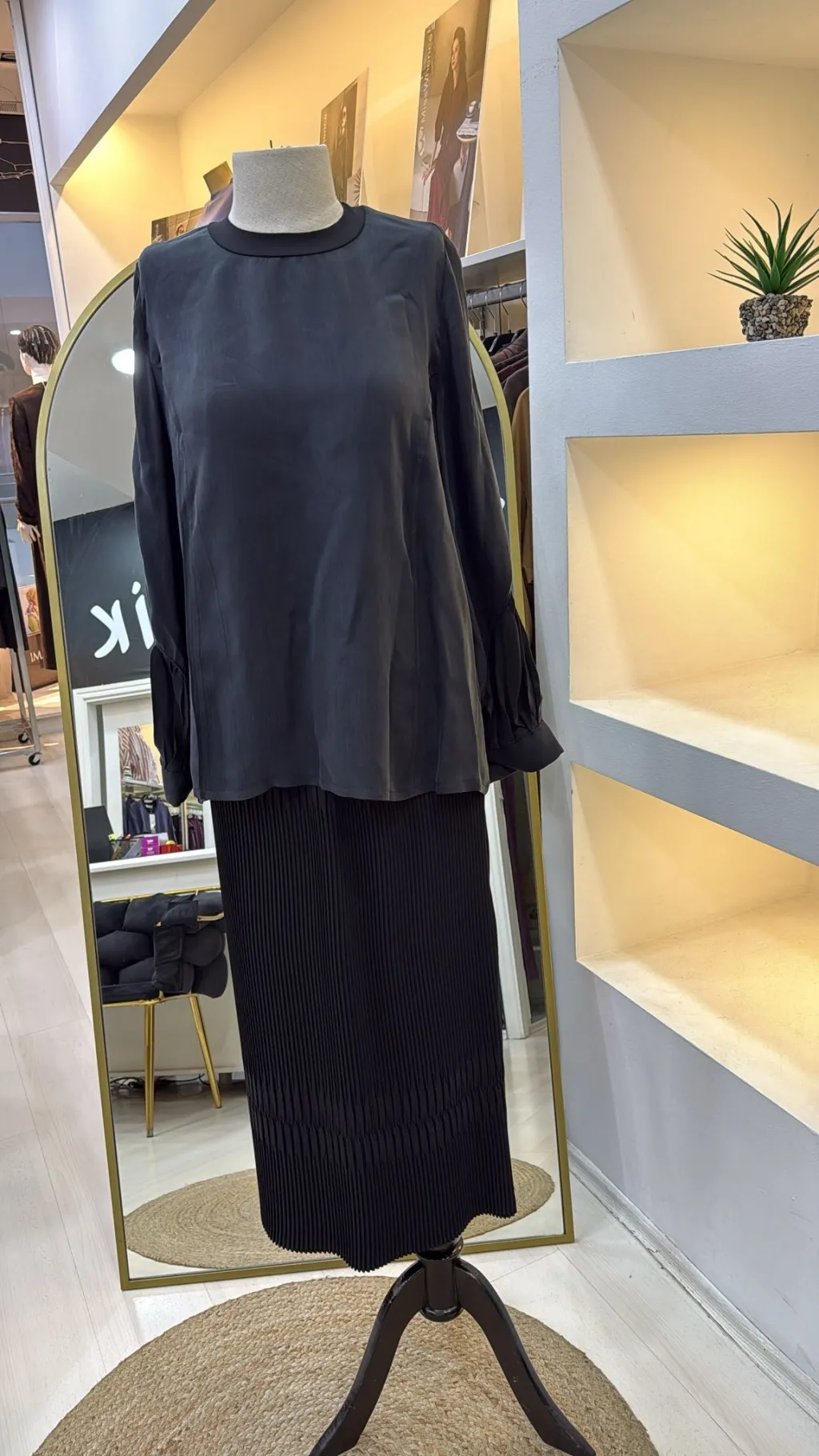 Misswhence Cupra İpek Etekli Bluz Takım 39002 SİYAH