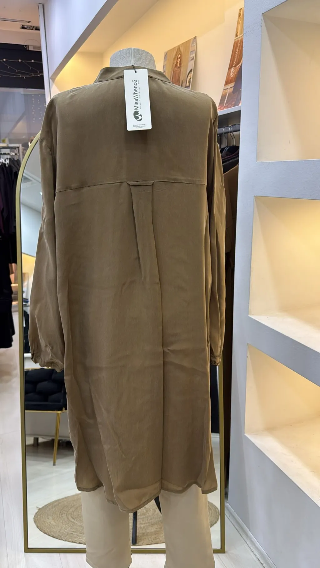 Misswhence Cupra İpek Etekli Gömlek Takım 39304 KAHVE