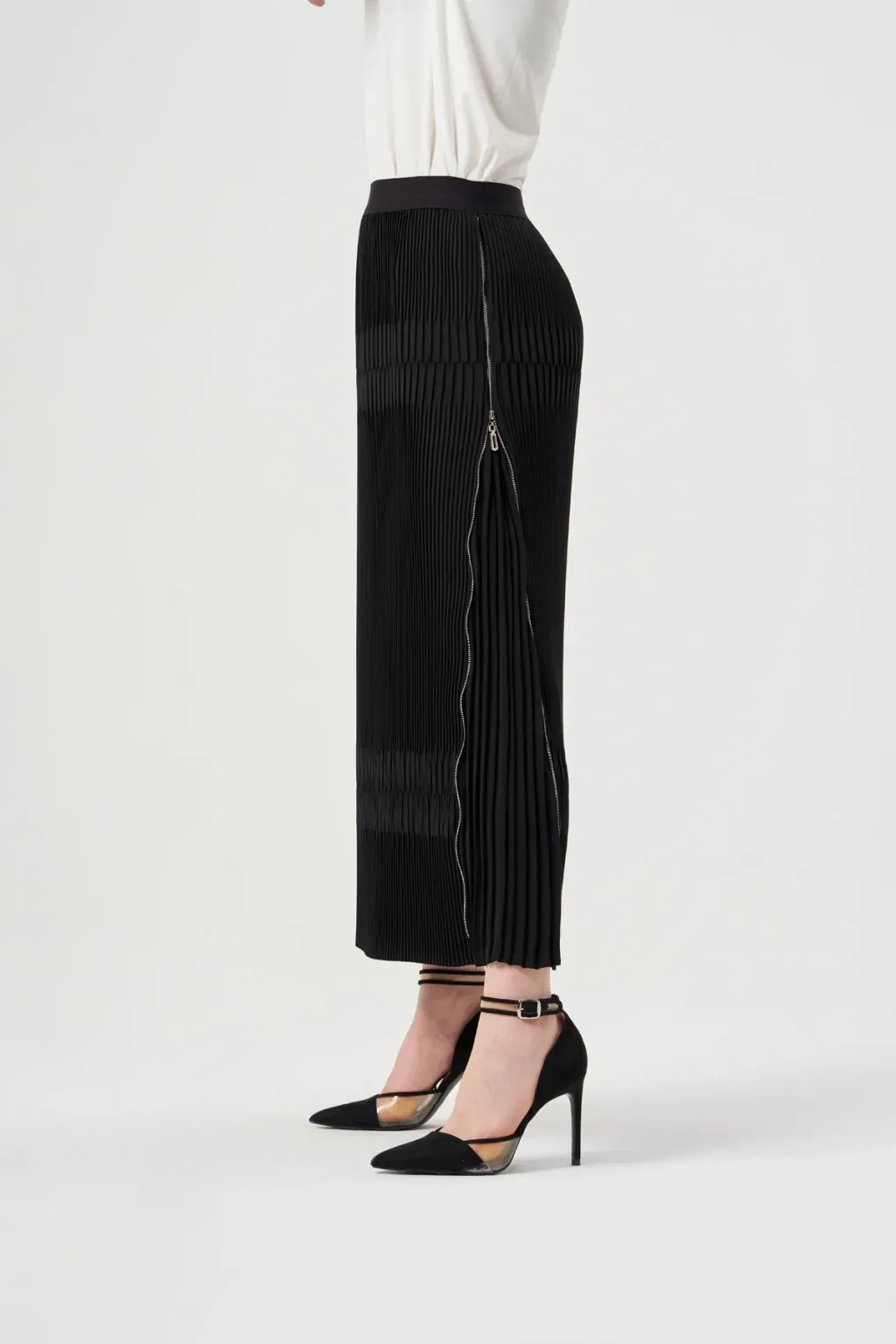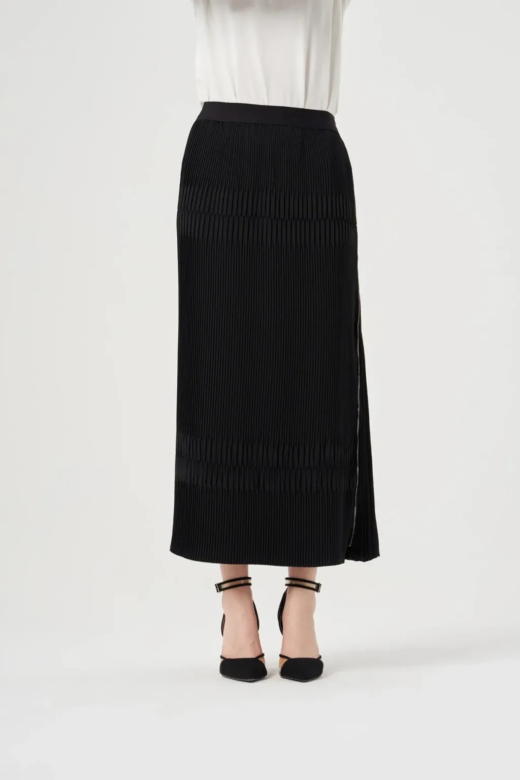Siyah | 38.40.42.44 | %50 Viscon %50 Rayon | Klasik Akşam Eteği | Altın Kolye, Siyah Topuklu Ayakkabı |