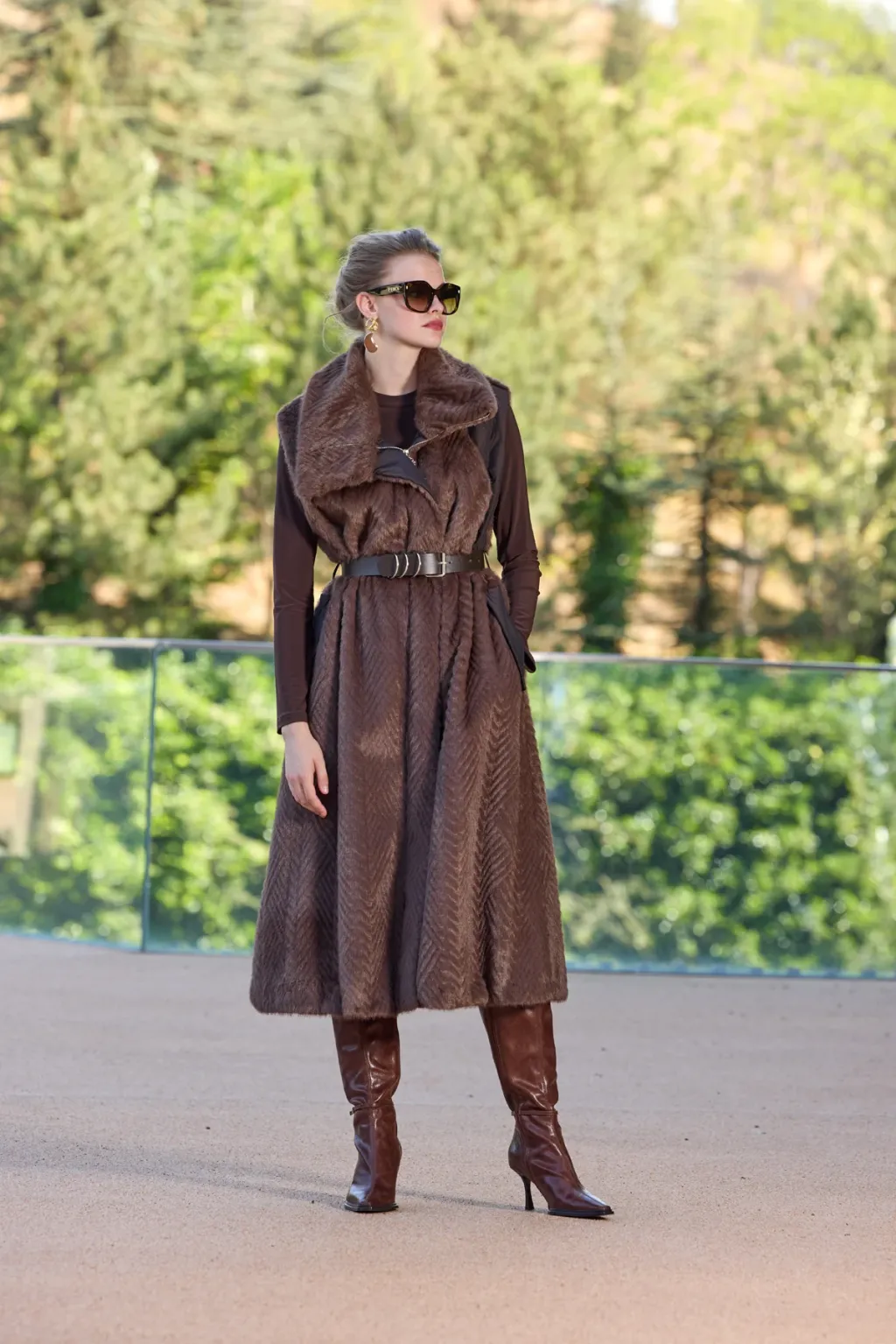Misswhence Cupro Dantelli Etek Takım 38025 kahverengi