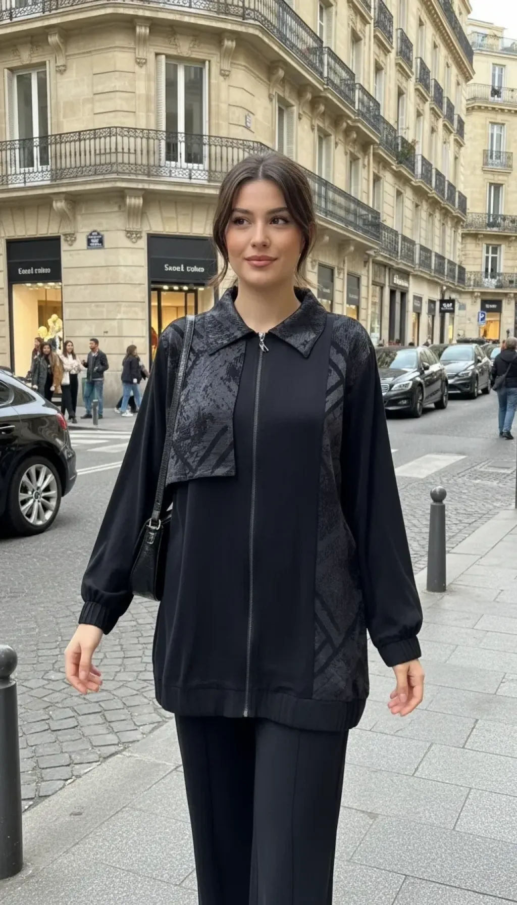 Tunik Gömlek Yaka Takma Kol Yarım Gizli Düğmeli Rahat Kalıptır