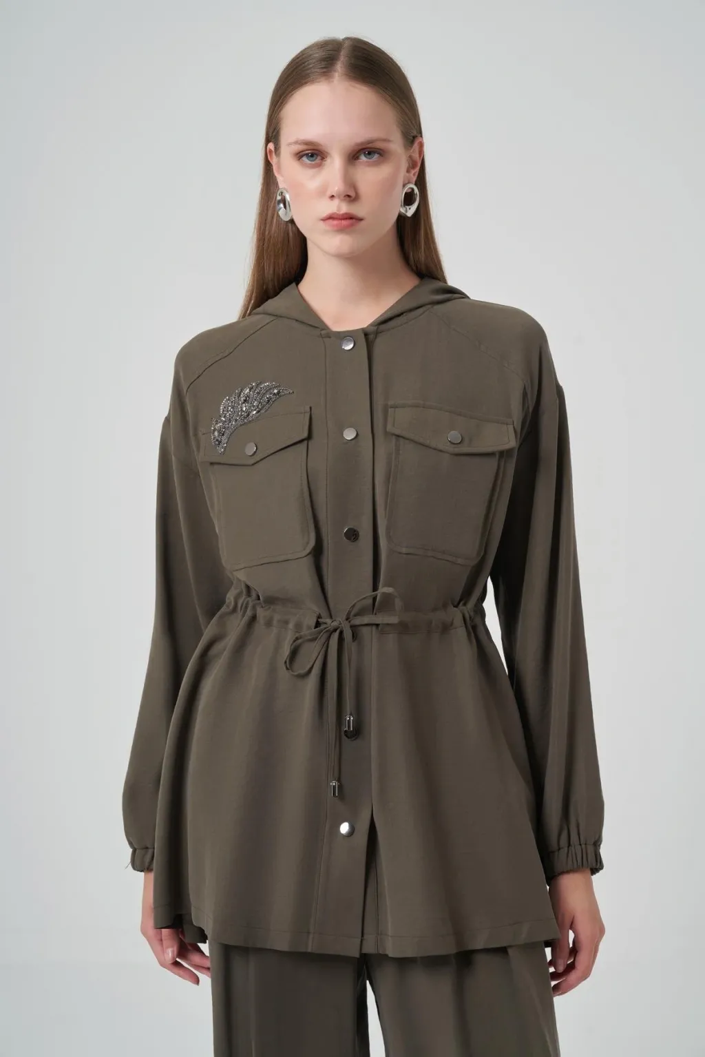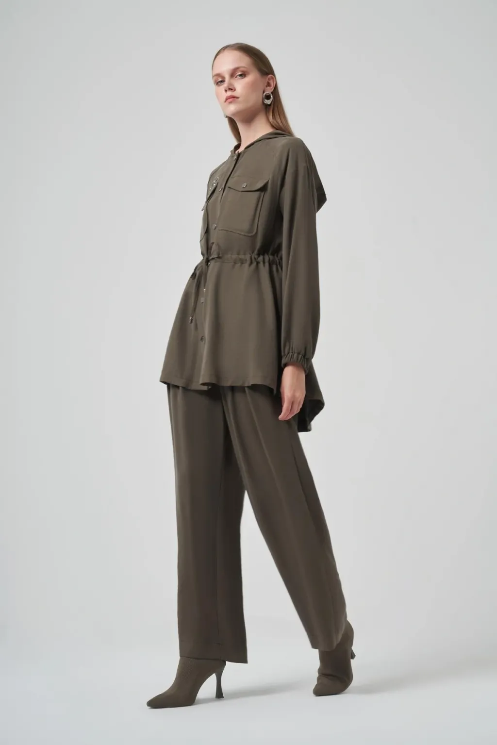Tunik Gömlek Yaka Takma Kol Yarım Gizli Düğmeli Rahat Kalıptır