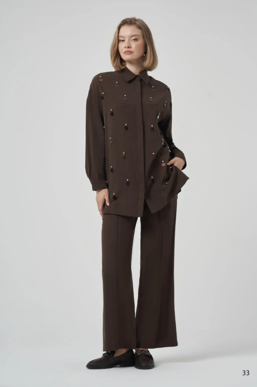 Tunik Gömlek Yaka Takma Kol Yarım Gizli Düğmeli Rahat Kalıptır