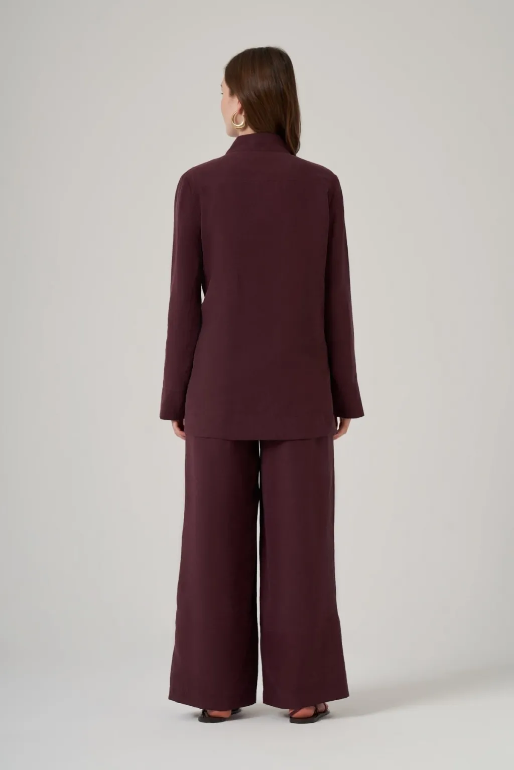 Nuss 1055 Kendinden Çizgili Pantolonlu Takım - Mürdüm