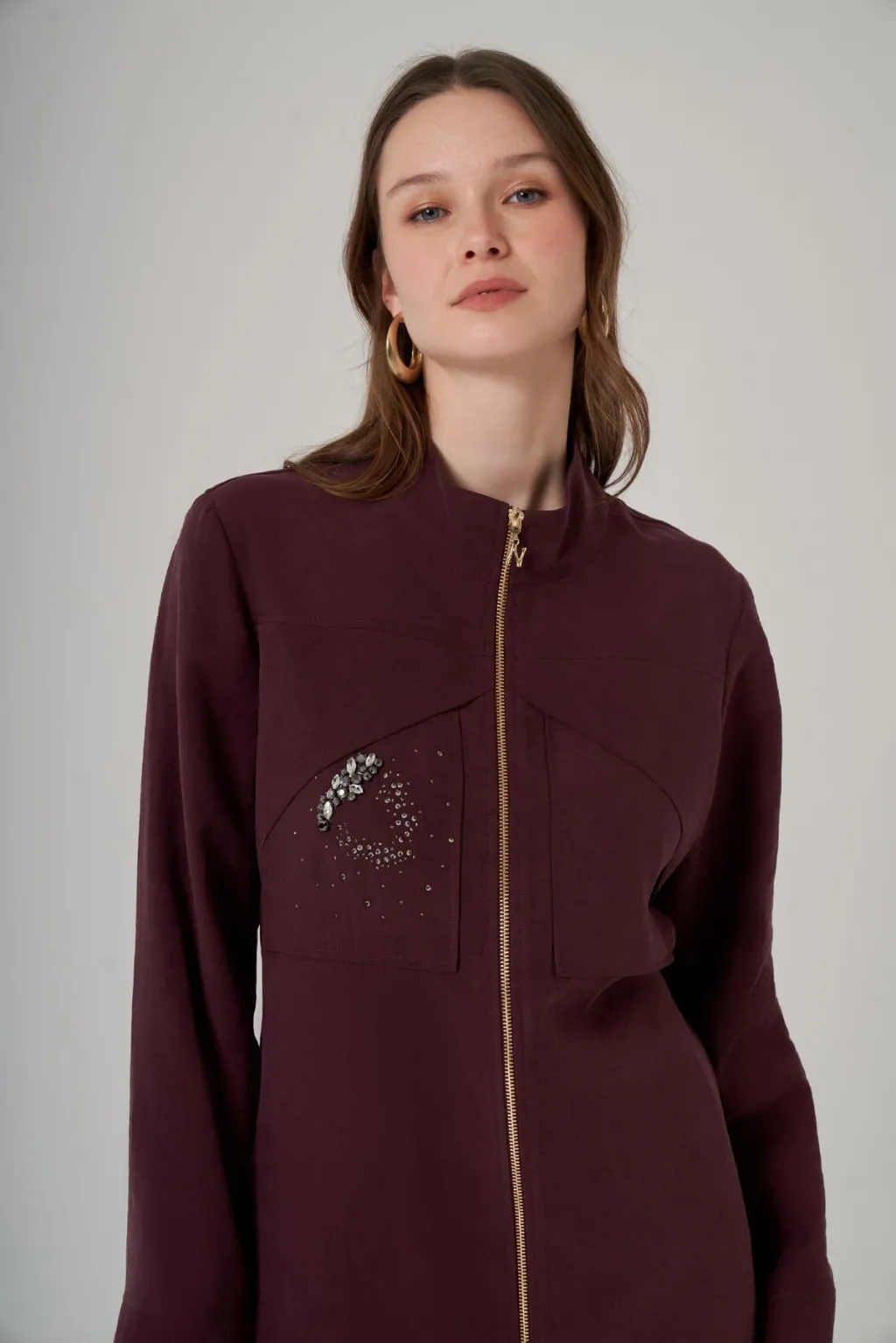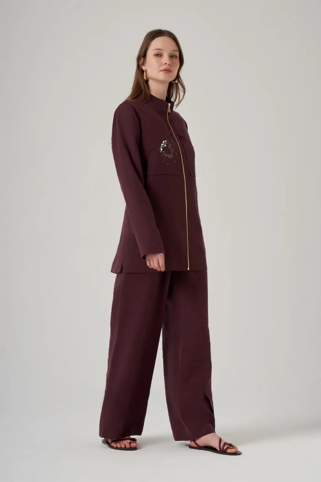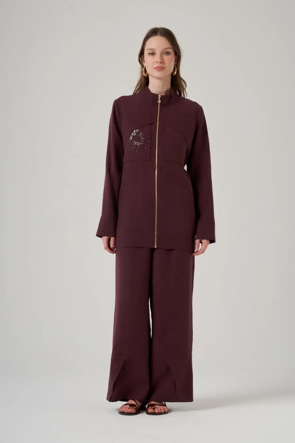 Nuss 1054 Cep Taş İşlemeli Pantolonlu Takım - Mürdüm