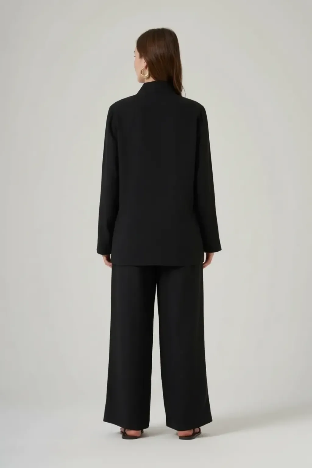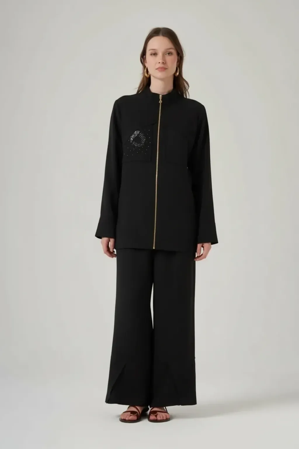 Nuss 1054 Cep Taş İşlemeli Pantolonlu Takım - siyah