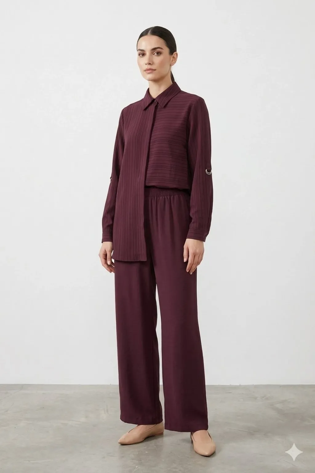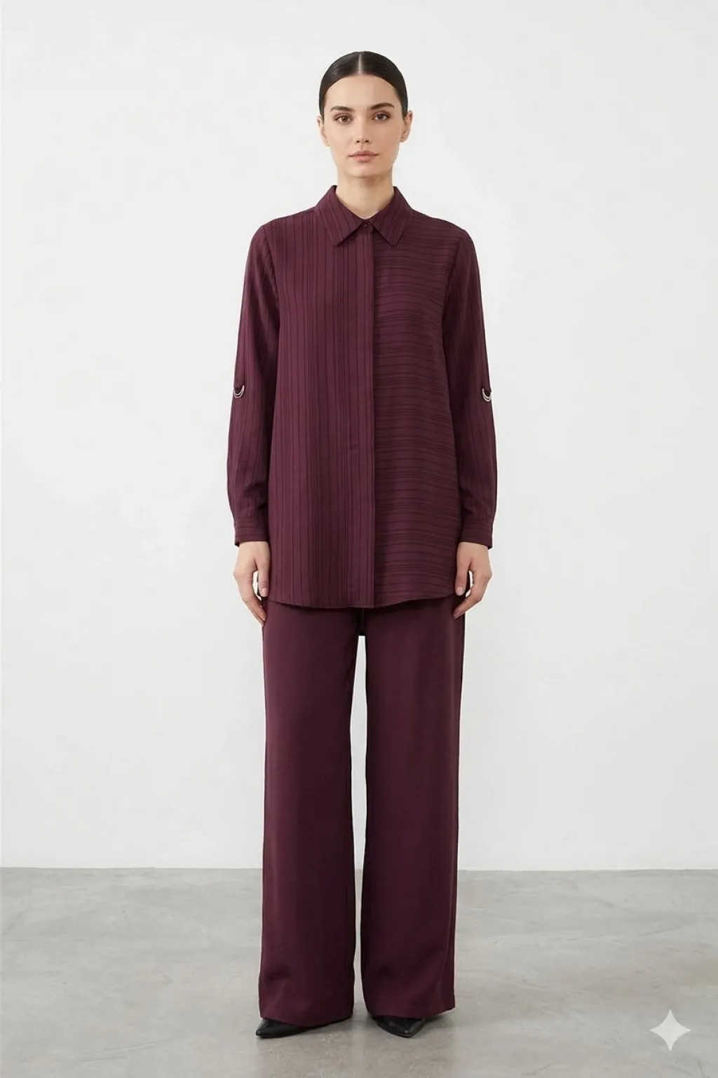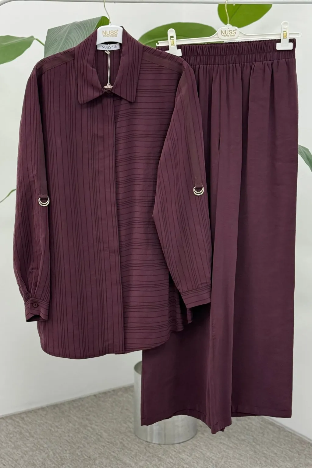 Nuss 1055 Kendinden Çizgili Pantolonlu Takım - Mürdüm