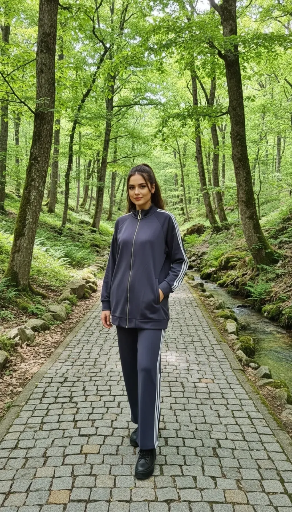 Nuss 1092 Şerit Desenli Pantolonlu Takım - LACİ