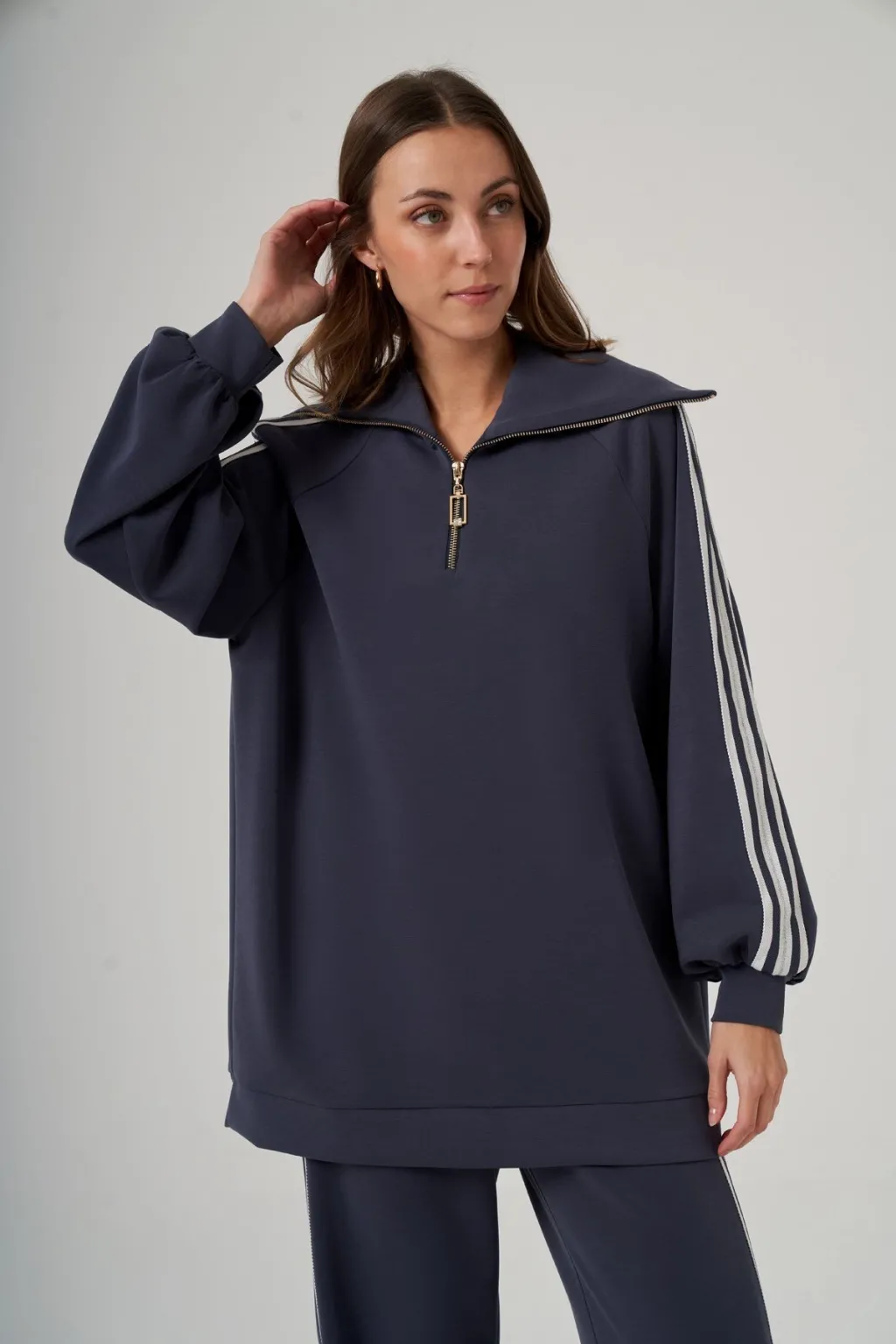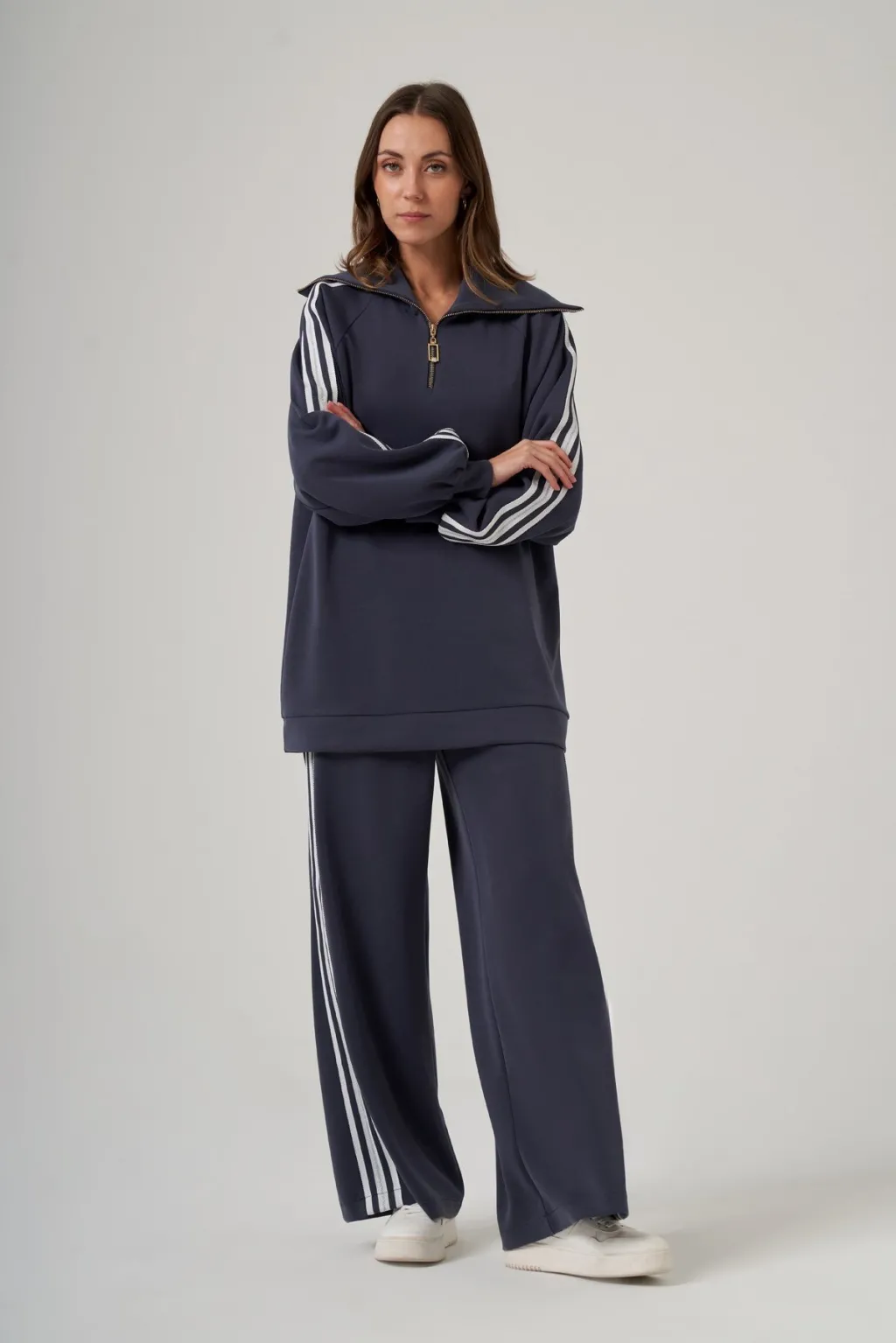 Nuss 1093 Gemici Yaka Şerit Detay Pantolonlu Takım - Lacivert