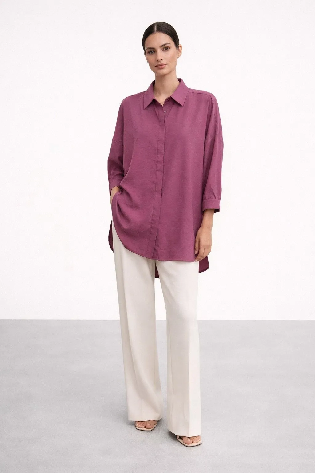 Nuss 1093 Şerit Desenli Pantolonlu Takım - mürdum