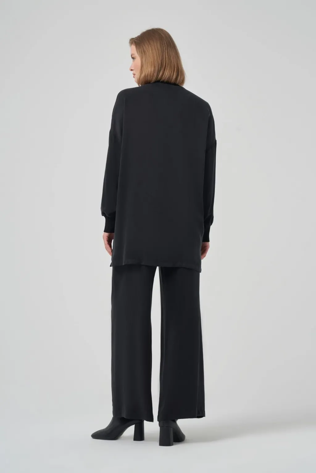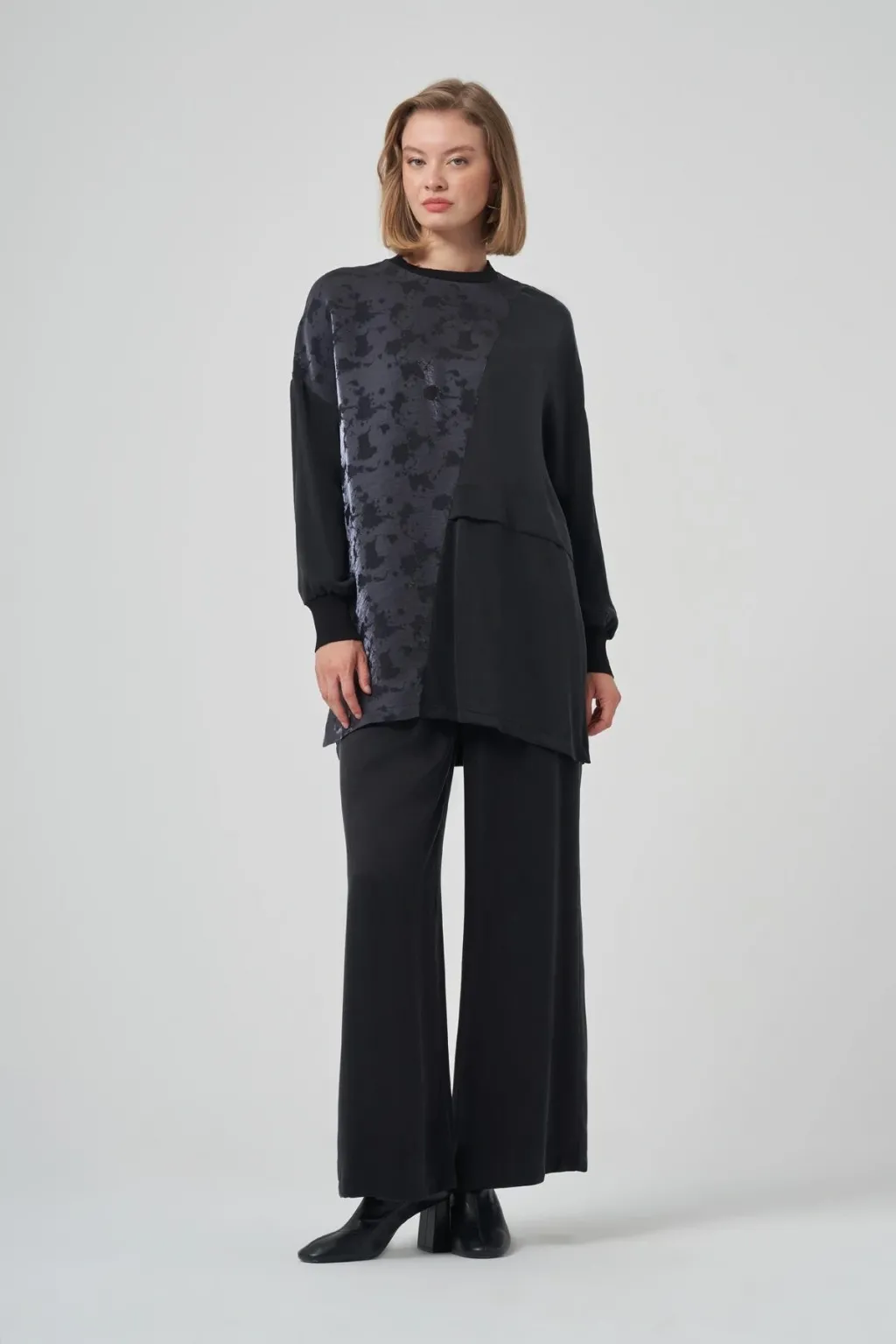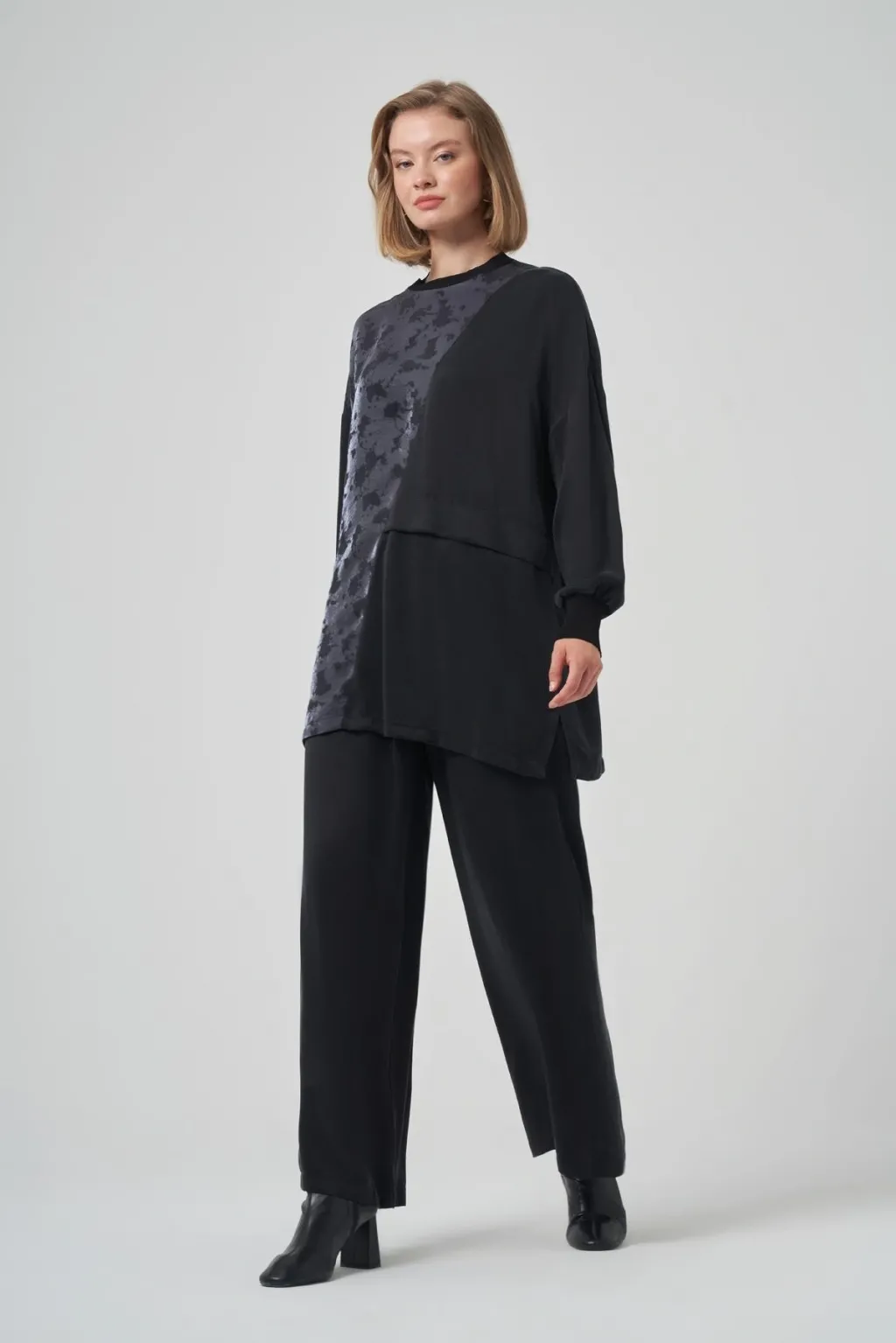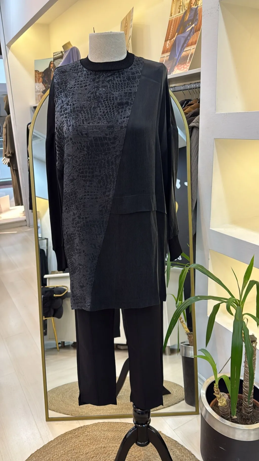 Sıfır Yaka Düşük Kol Asimetrik Kesim