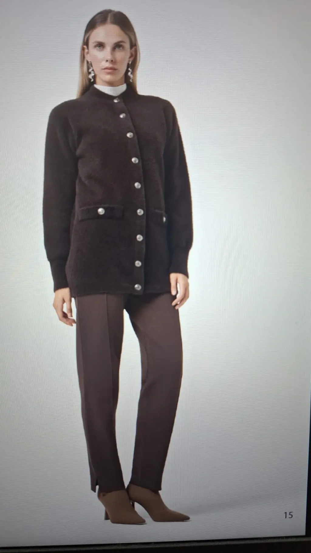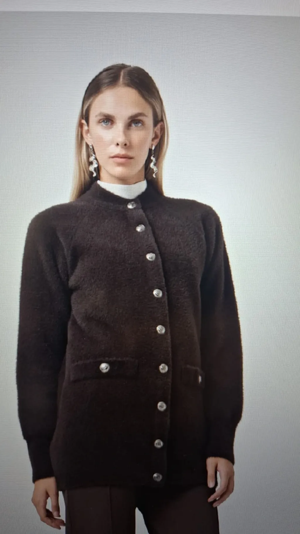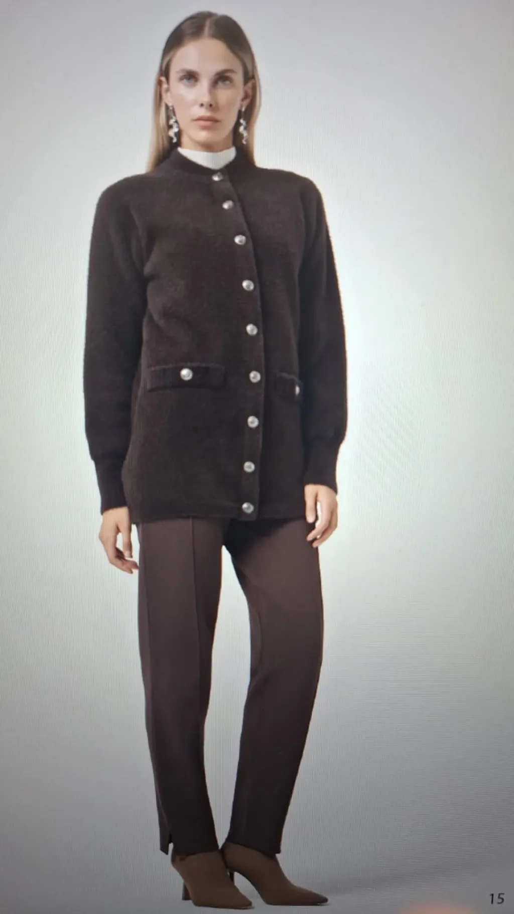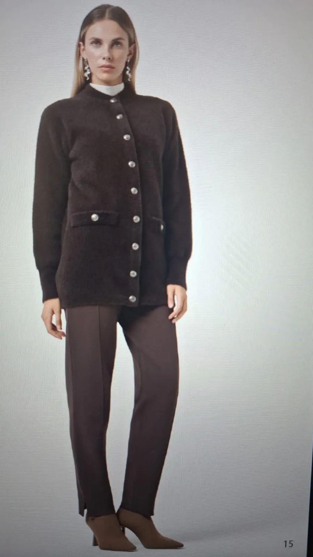 Nuss 7008 Cep Detay Düğmeli Angora Hırka - kahve