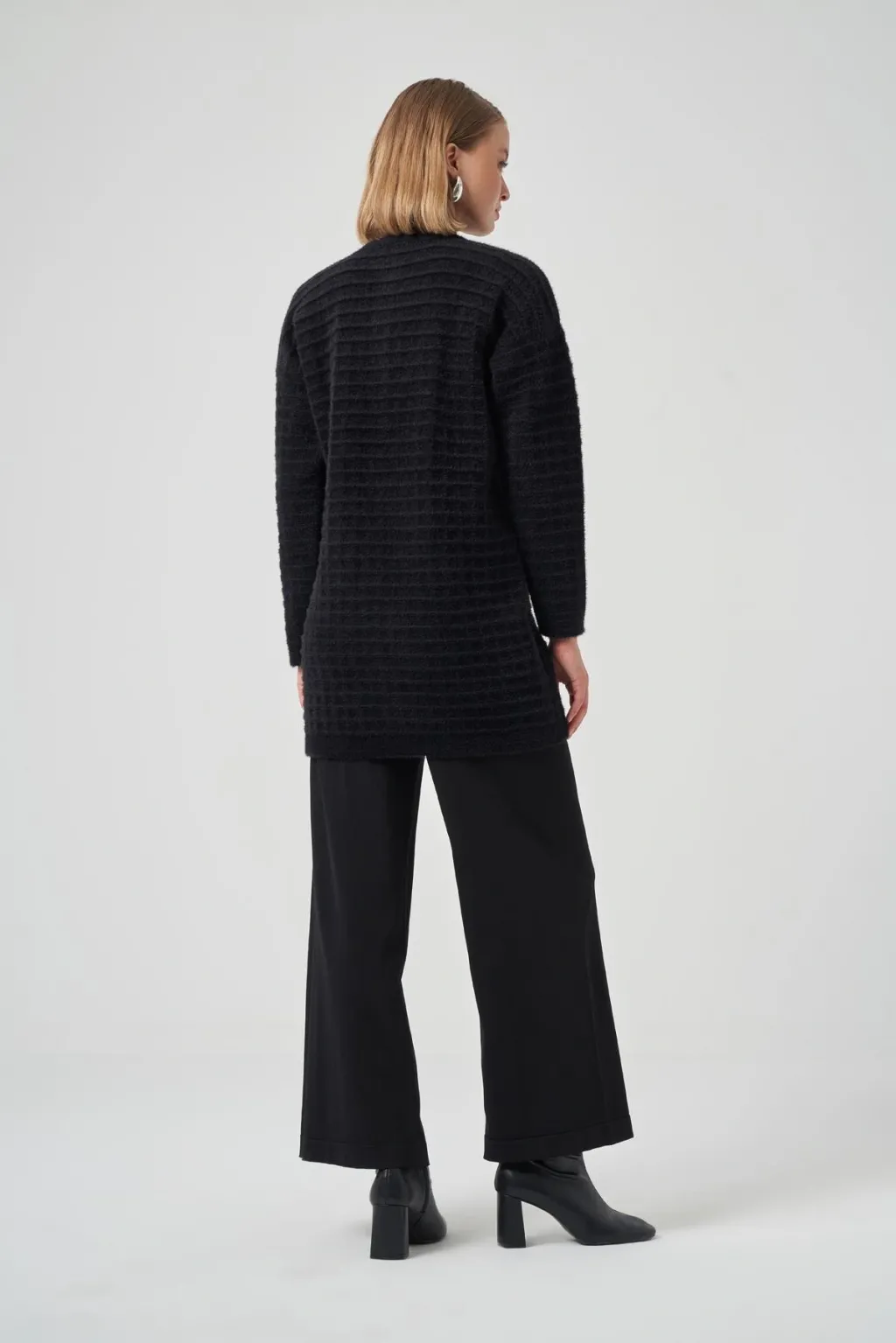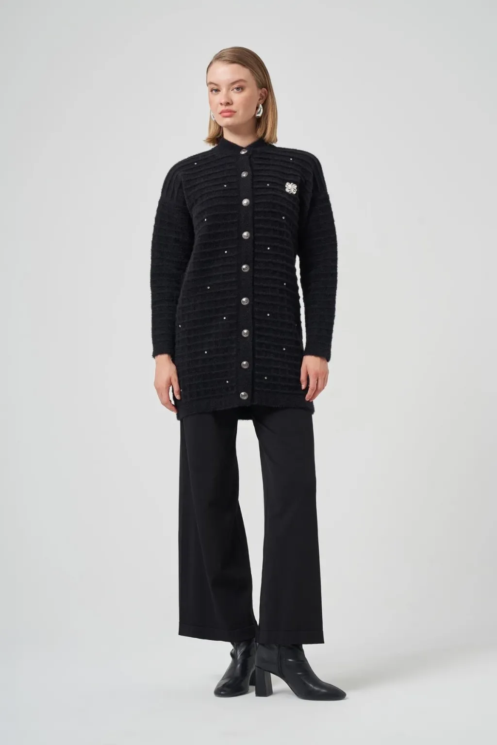 Nuss 7010 Serpme Taş İşlemeli Hırka - Siyah