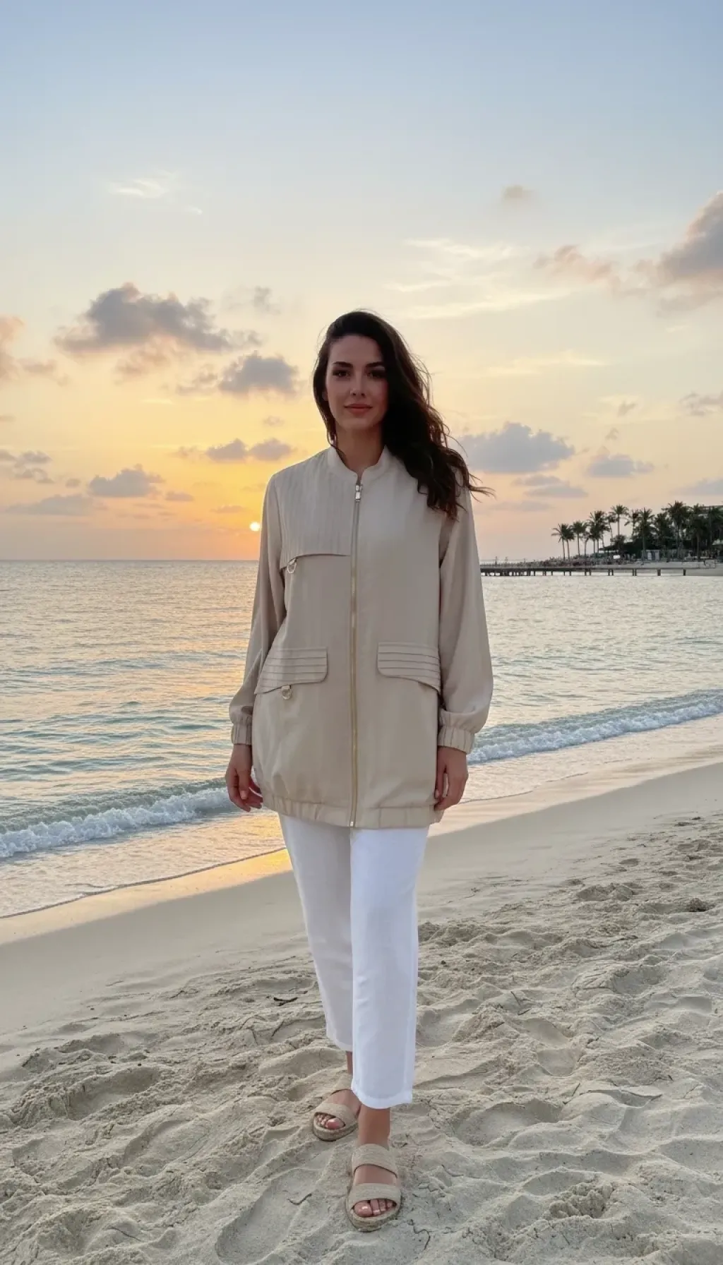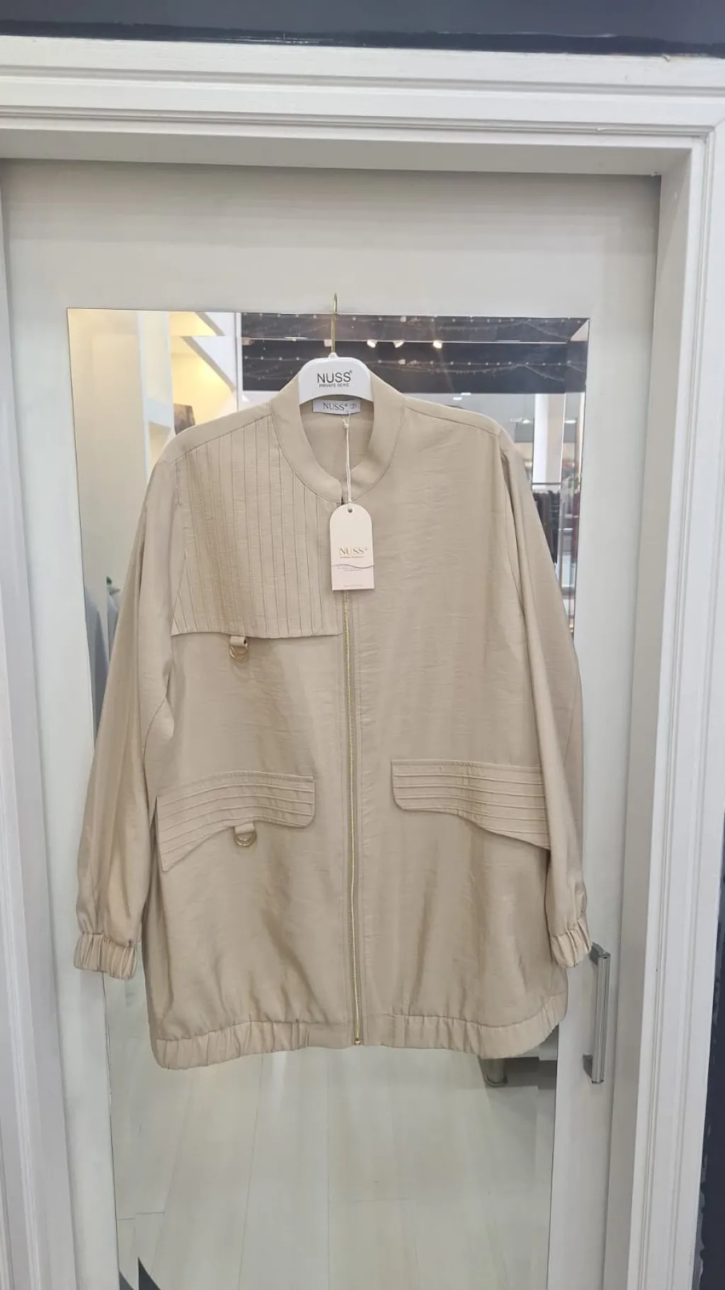 Kap Yakalı Takma Kol Fermuarlı Rahat Kalıptır