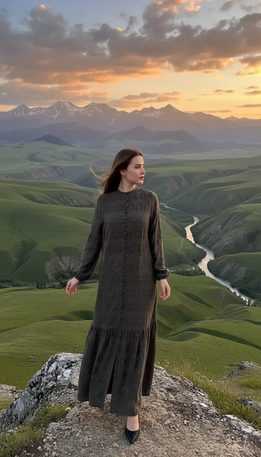 NUSS CUPRA İPEK ELBİSE 2026 VİZON