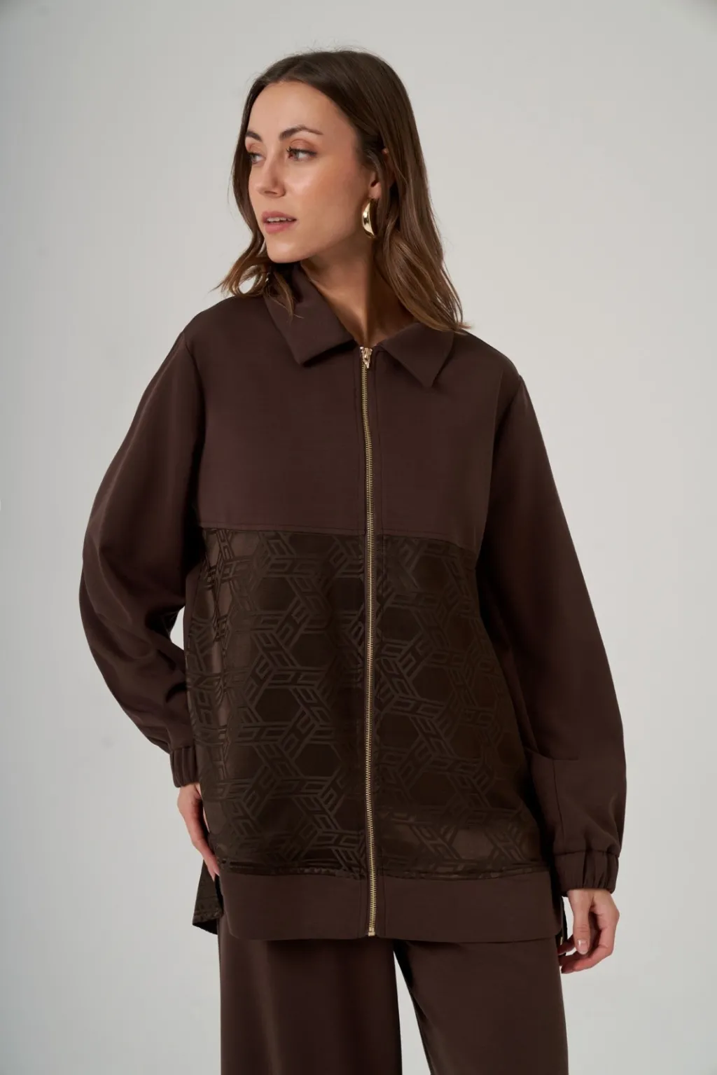 Kap Dik Yaka Düşük Kol Önden Fermuarlı Rahat Kalıp
