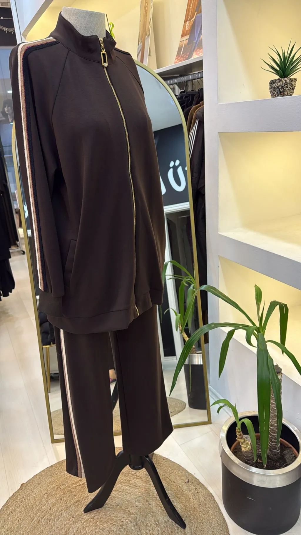 Nuss 1037 Taş İşlemeli Pantolonlu Takım kahve