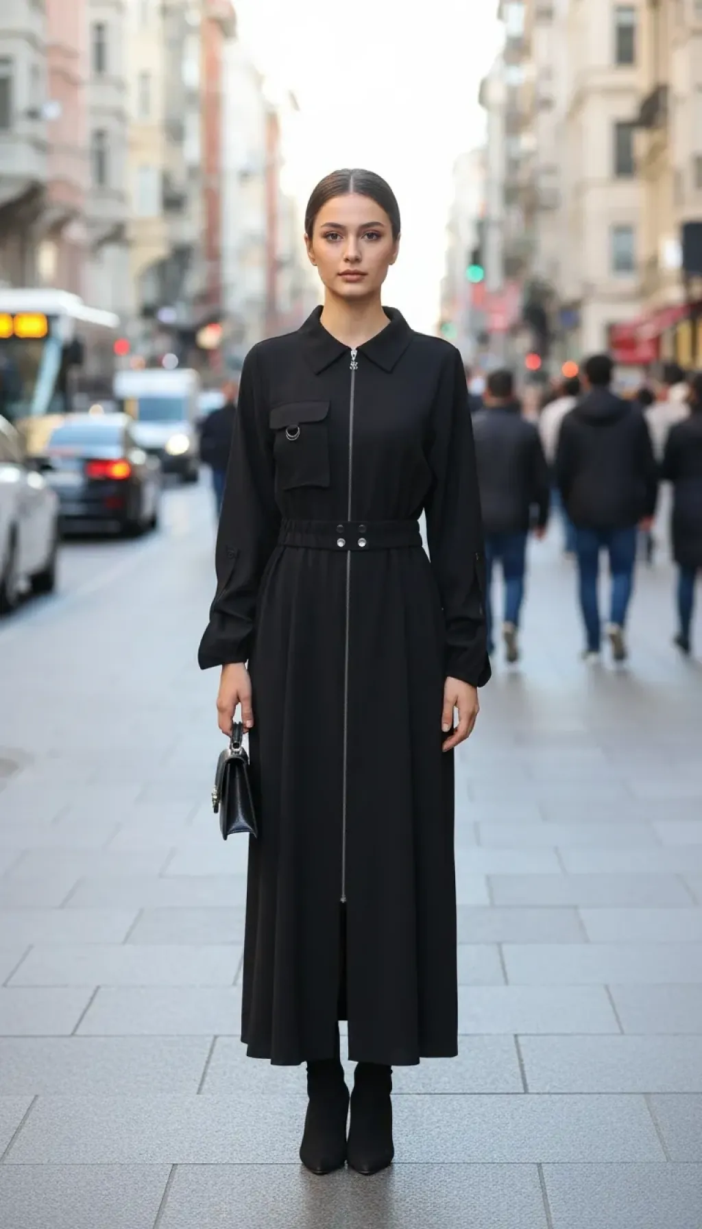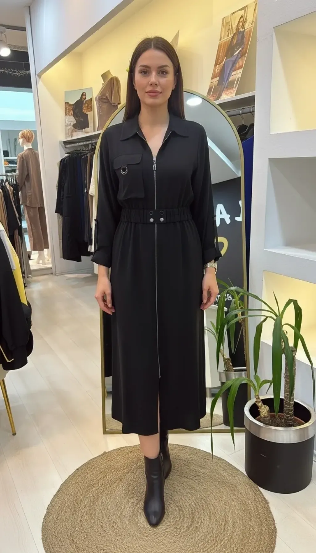 Nuss Tam Boy Fermuarlı Elbise - Siyah 2001