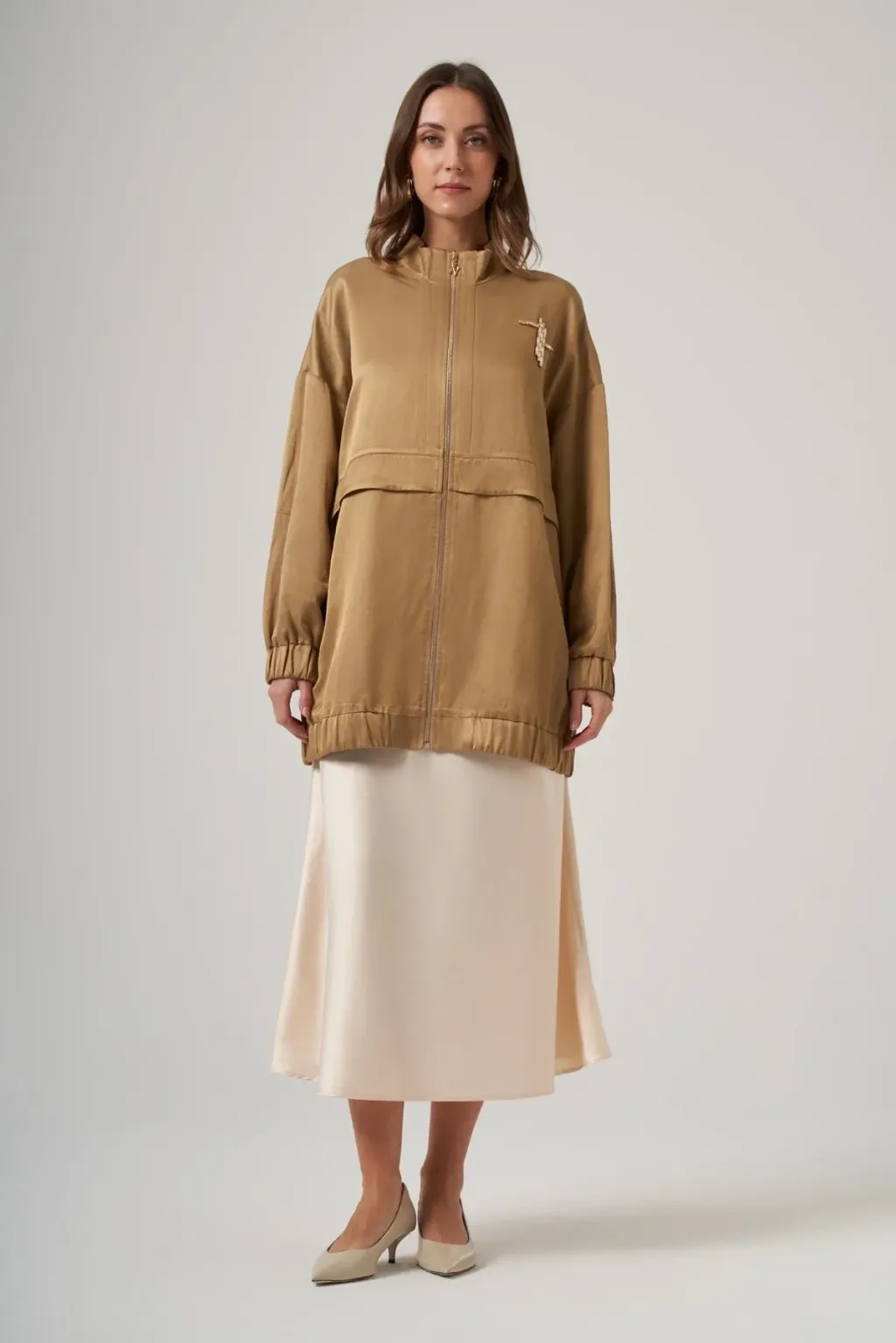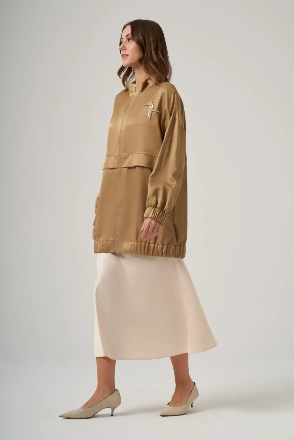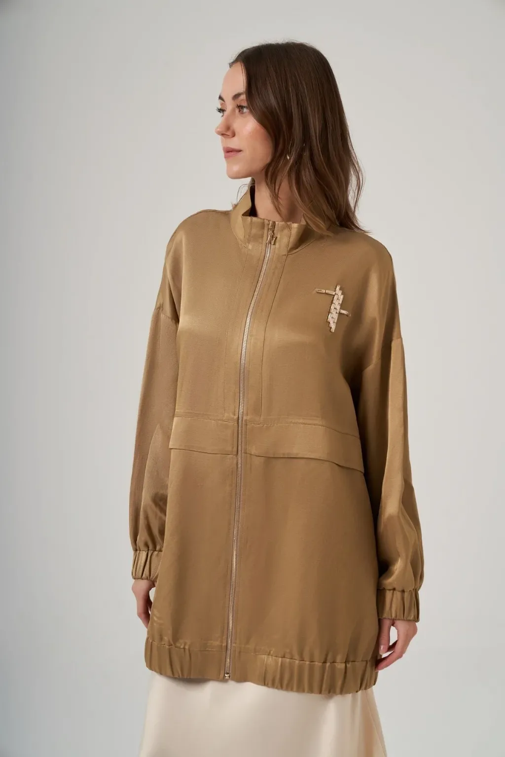 Kap Yakalı Takma Kol Fermuarlı Rahat Kalıptır
